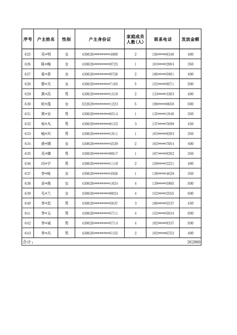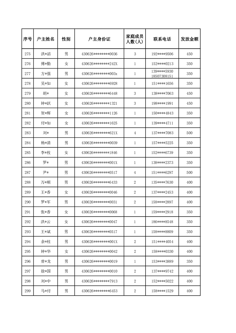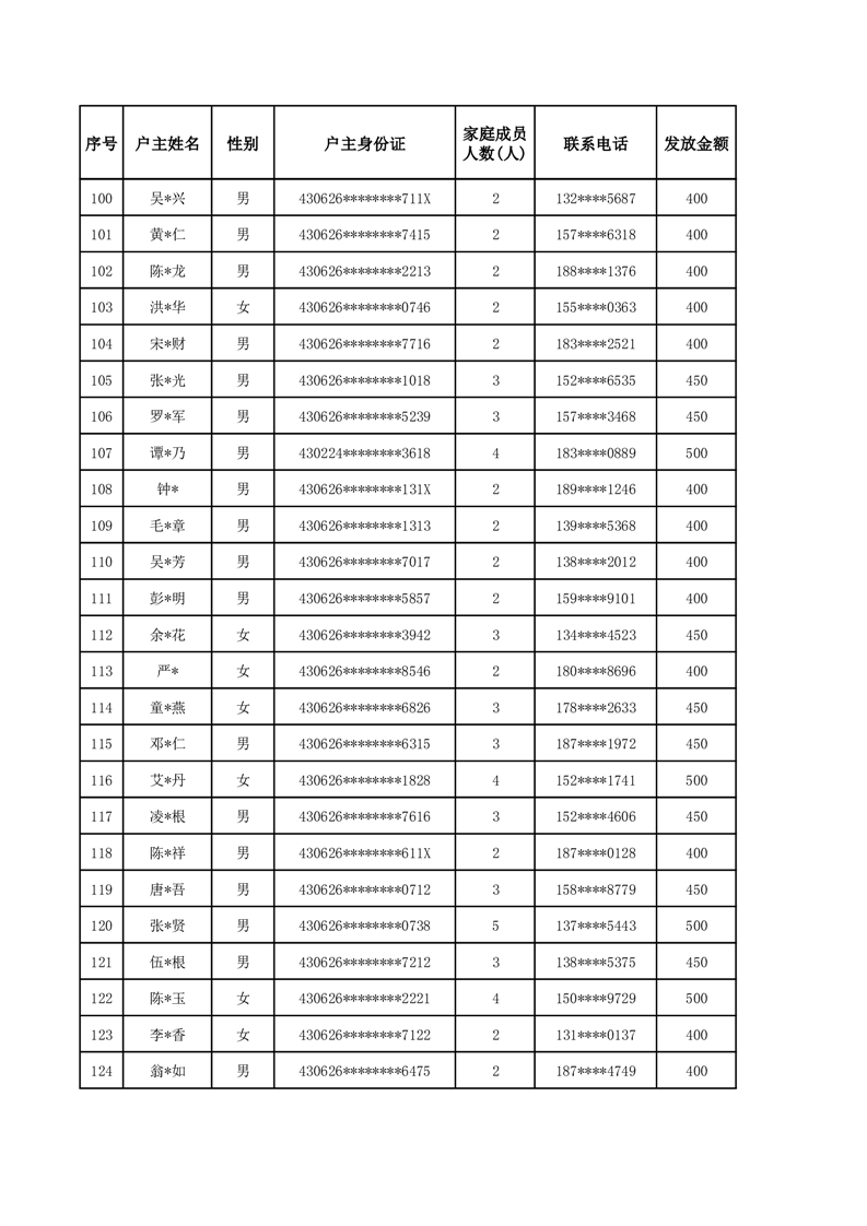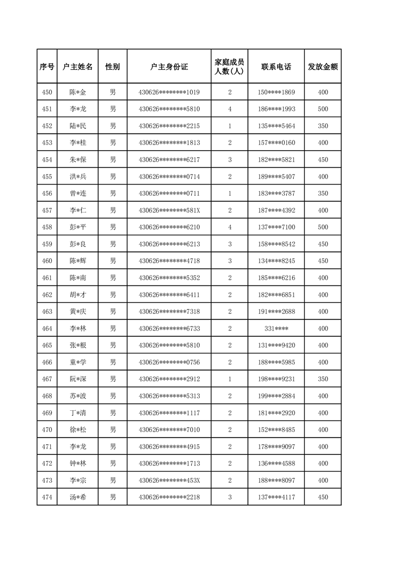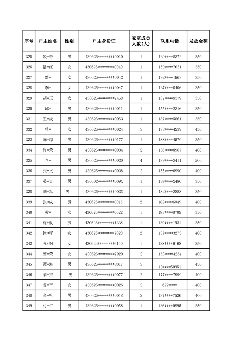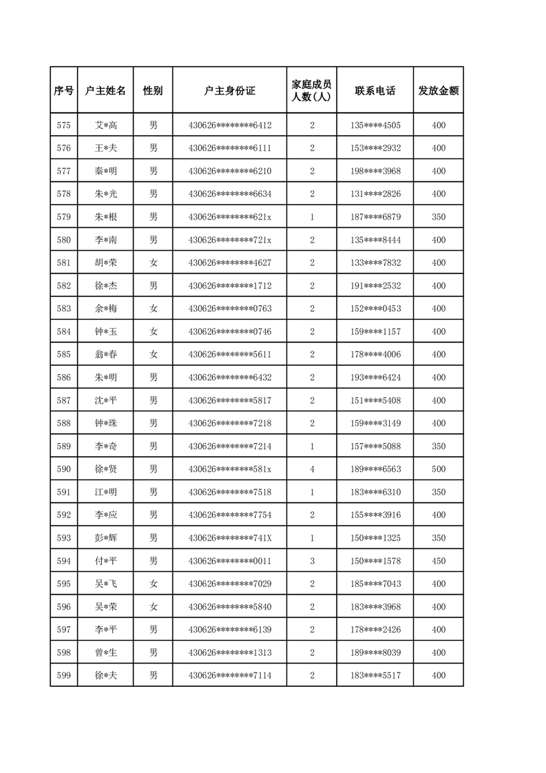平江县2025年二季度公共租赁住房补贴人员明细表