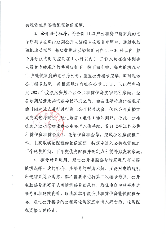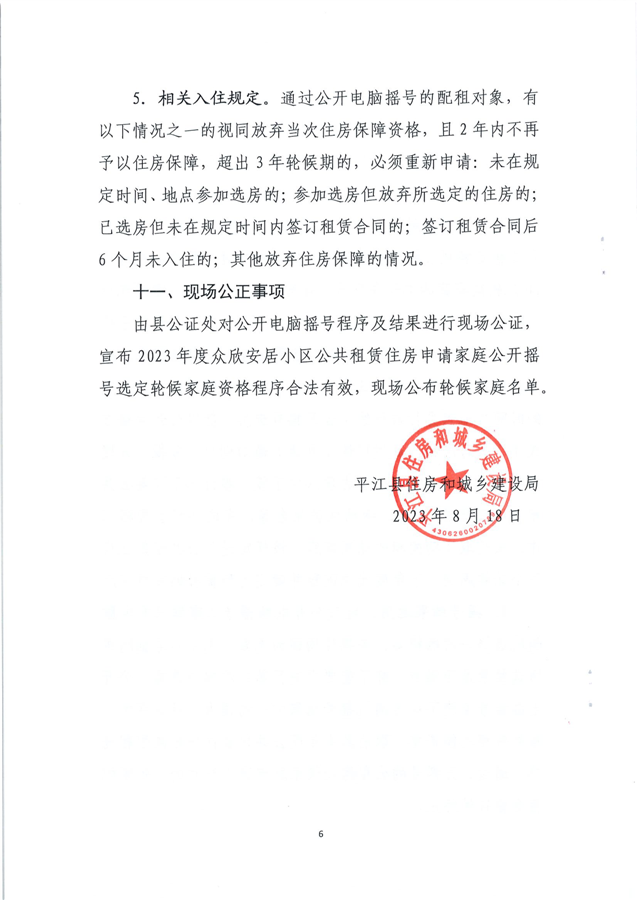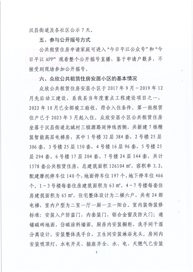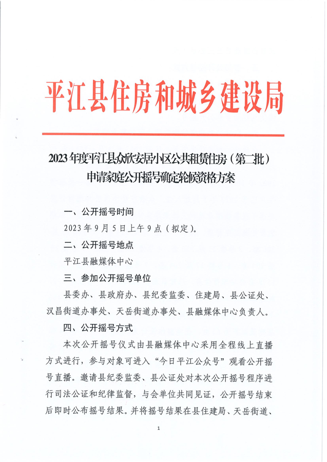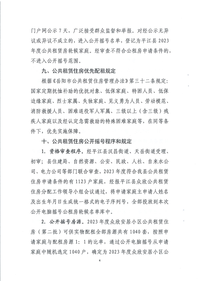 2023年度平江县众欣安居小区公共租赁住房(第二批)申请家庭公开摇号轮候资格方案