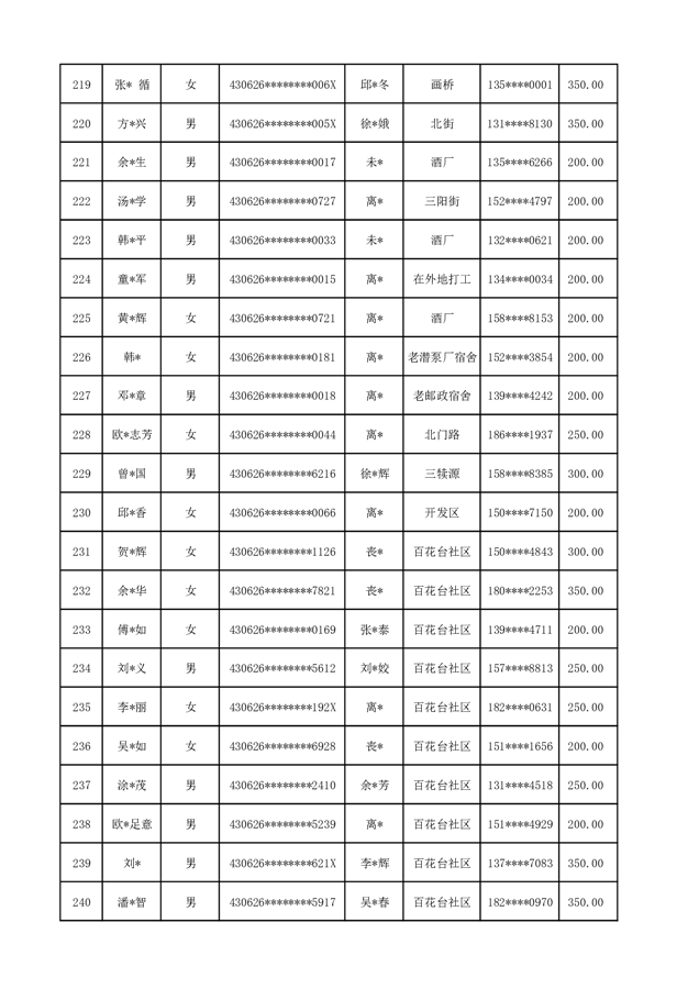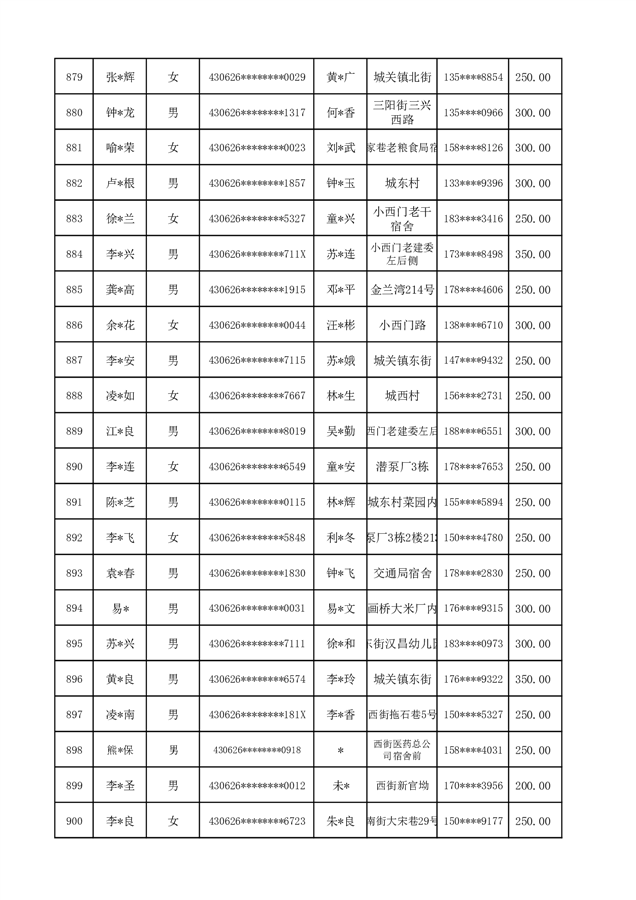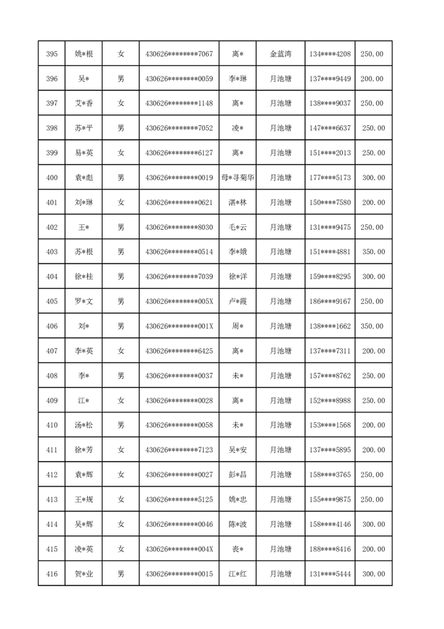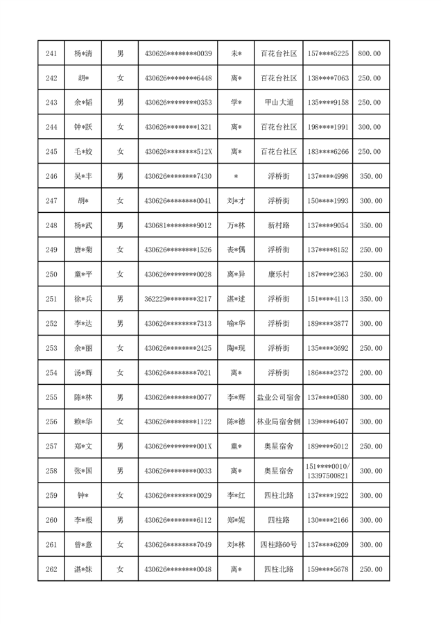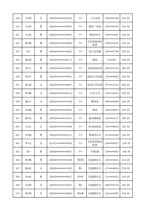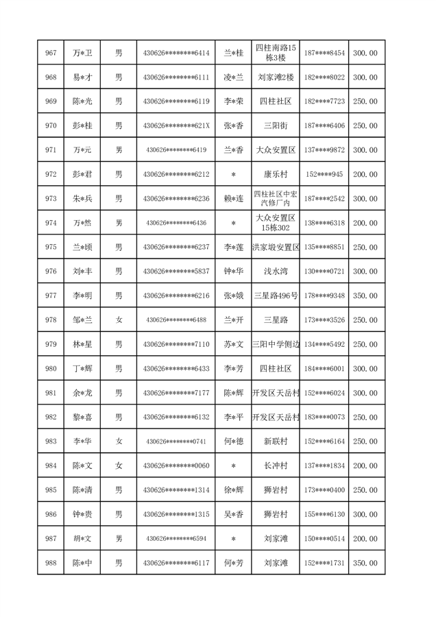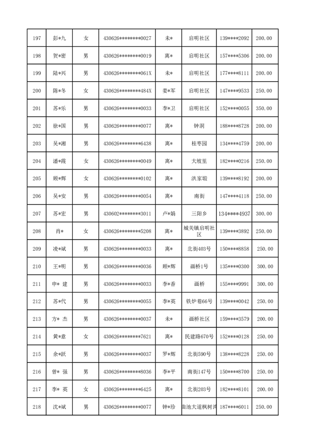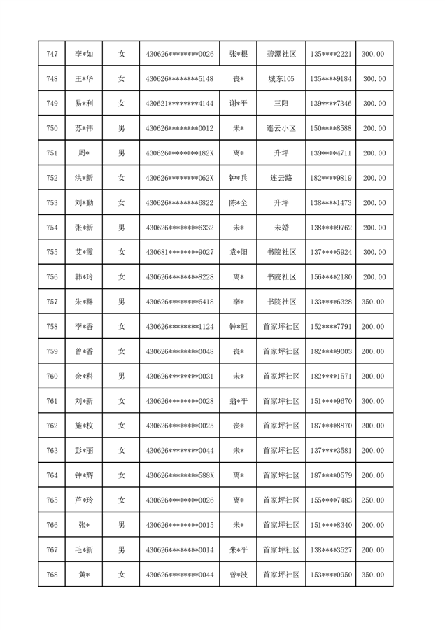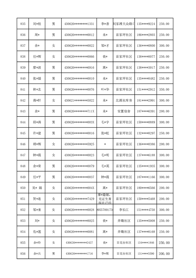 平江县2023年住房租赁补贴发放名册(第一季度) 明细表