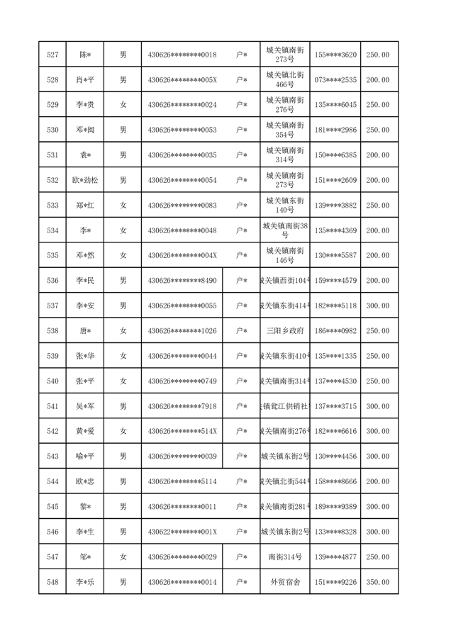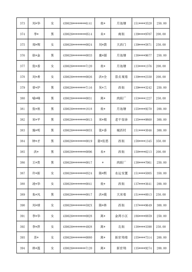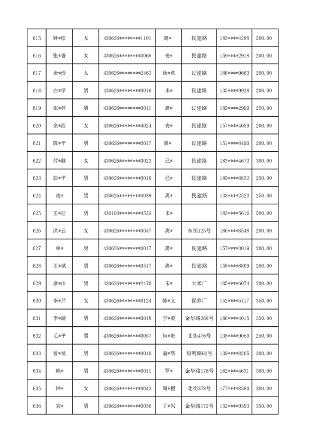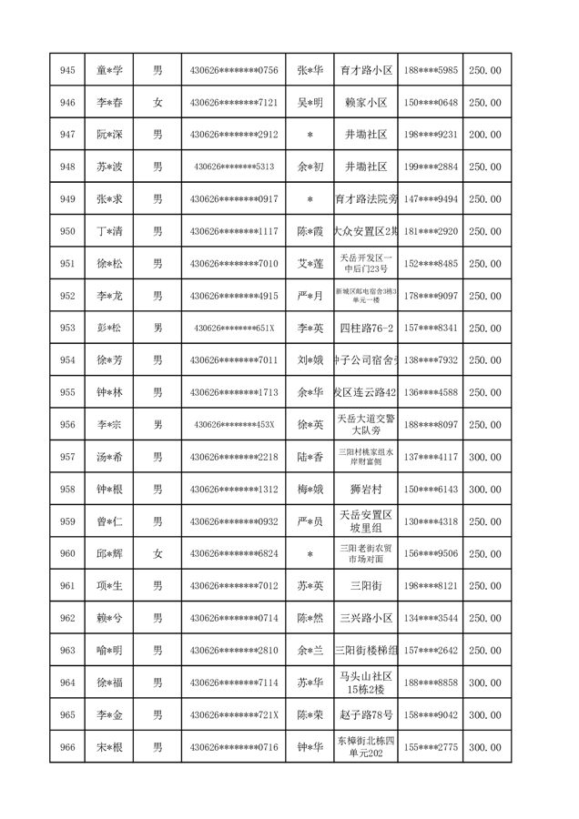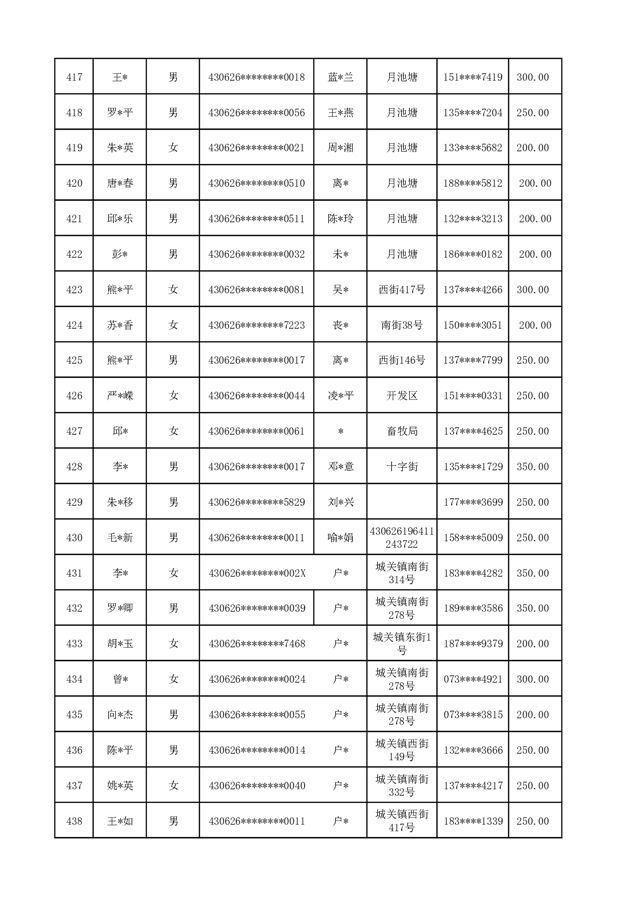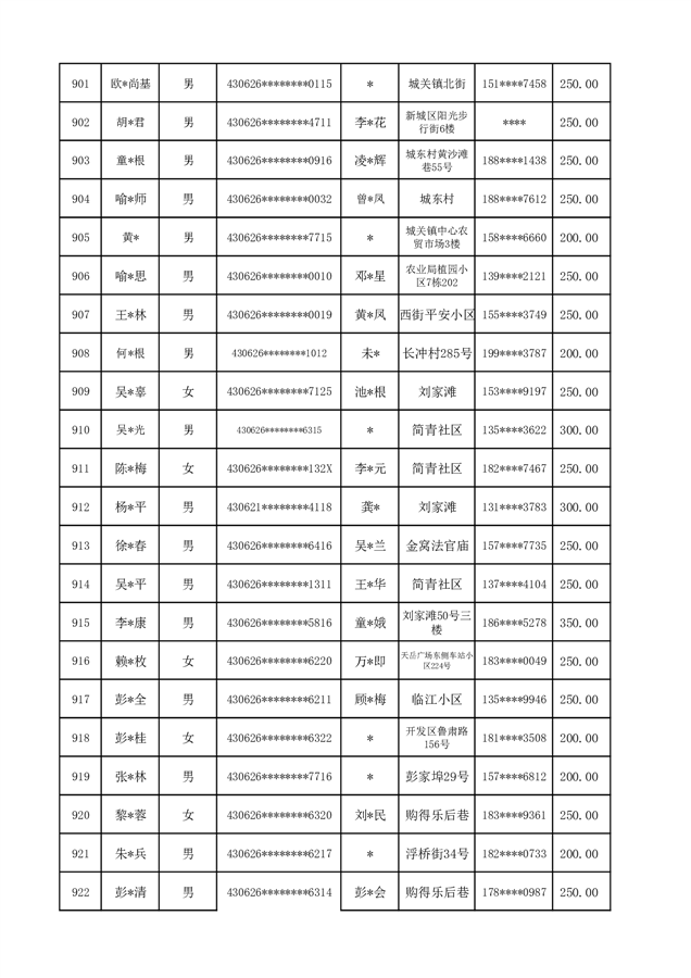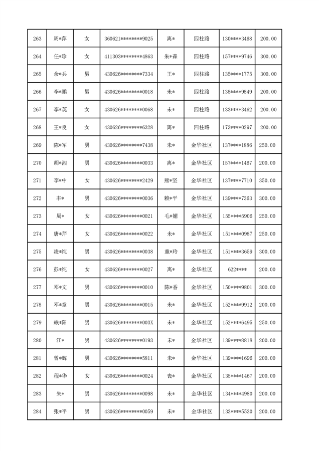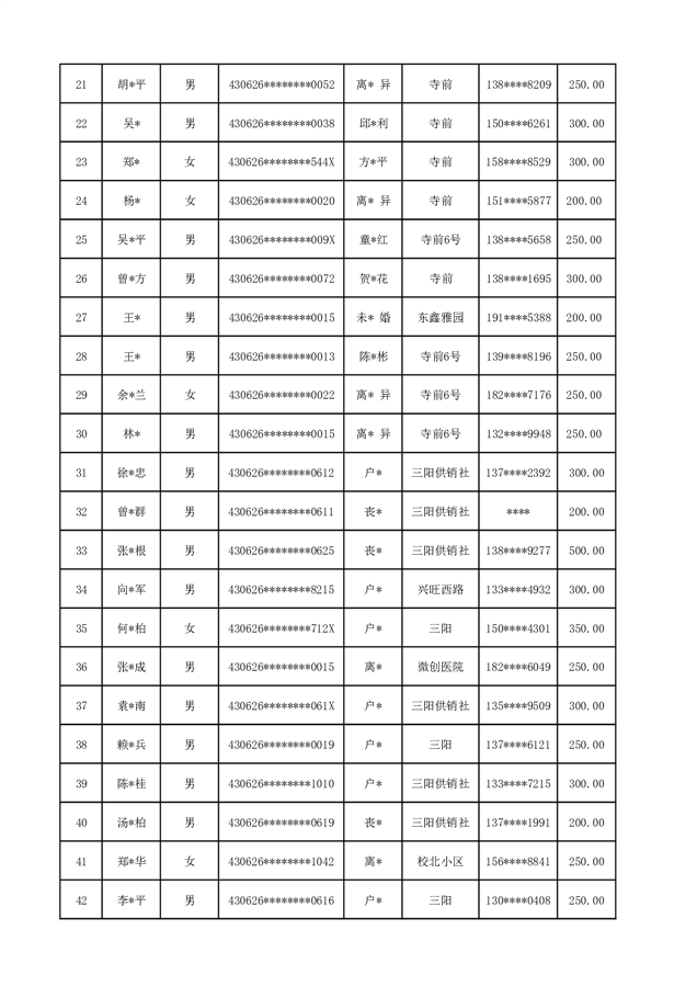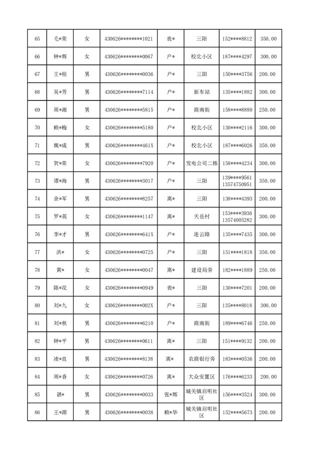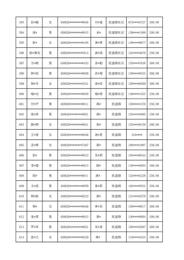 平江县2023年住房租赁补贴发放名册(第一季度) 明细表