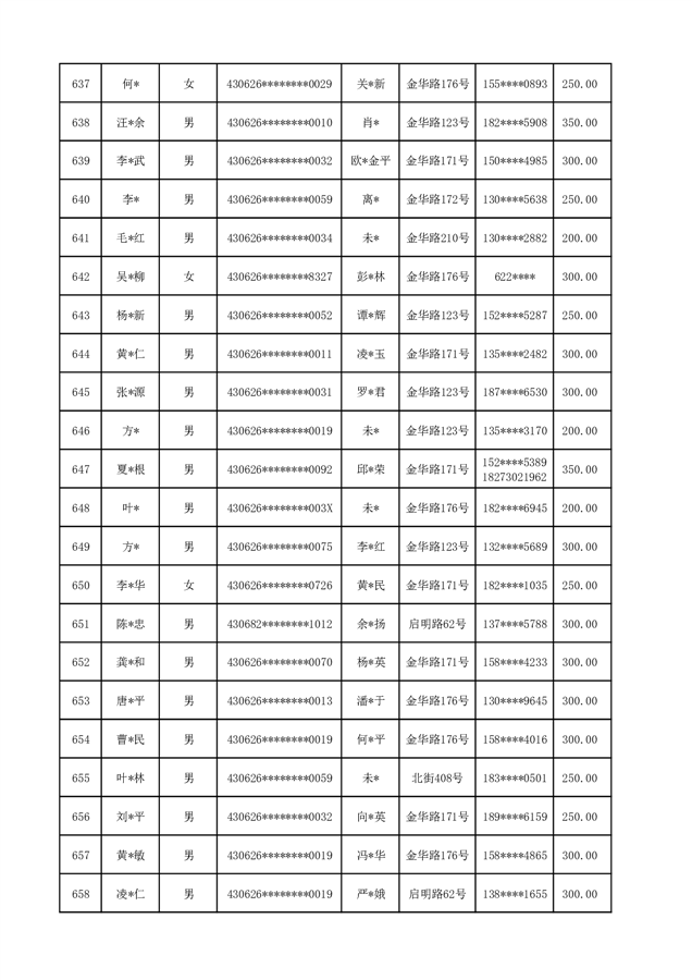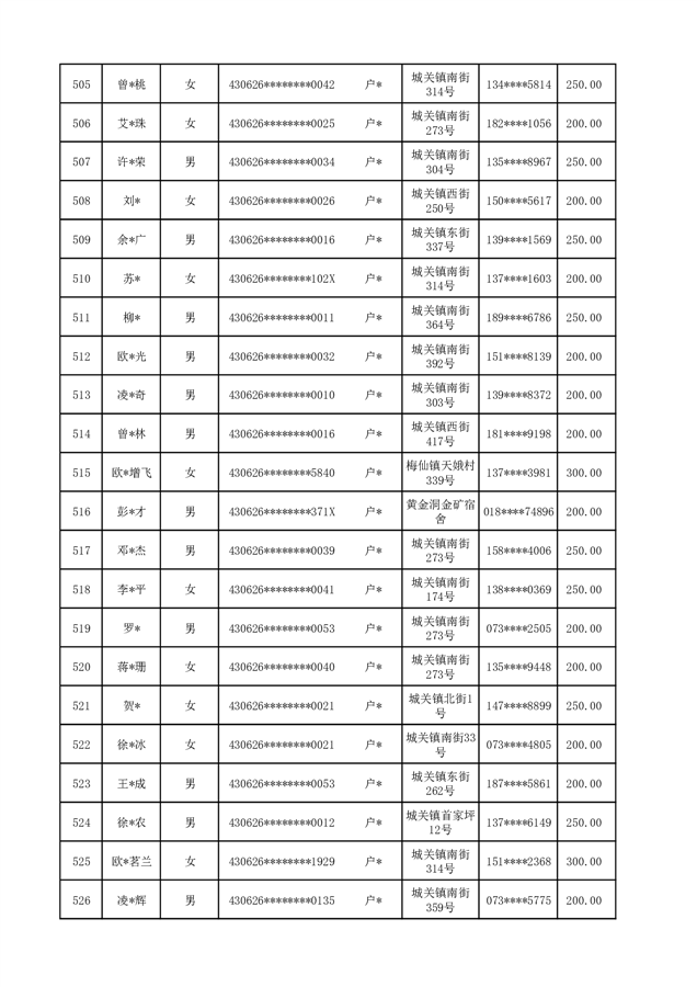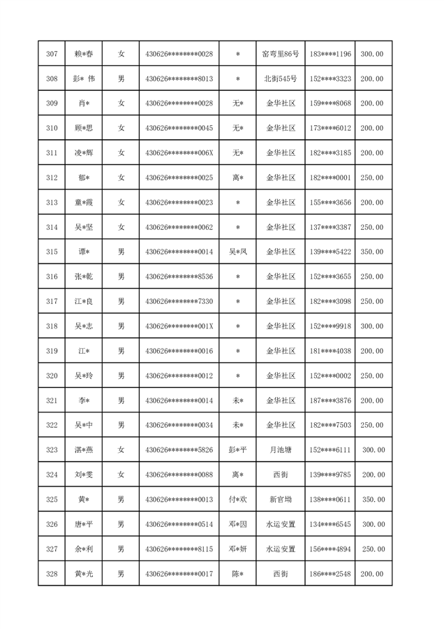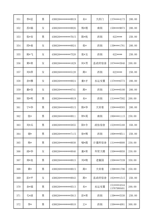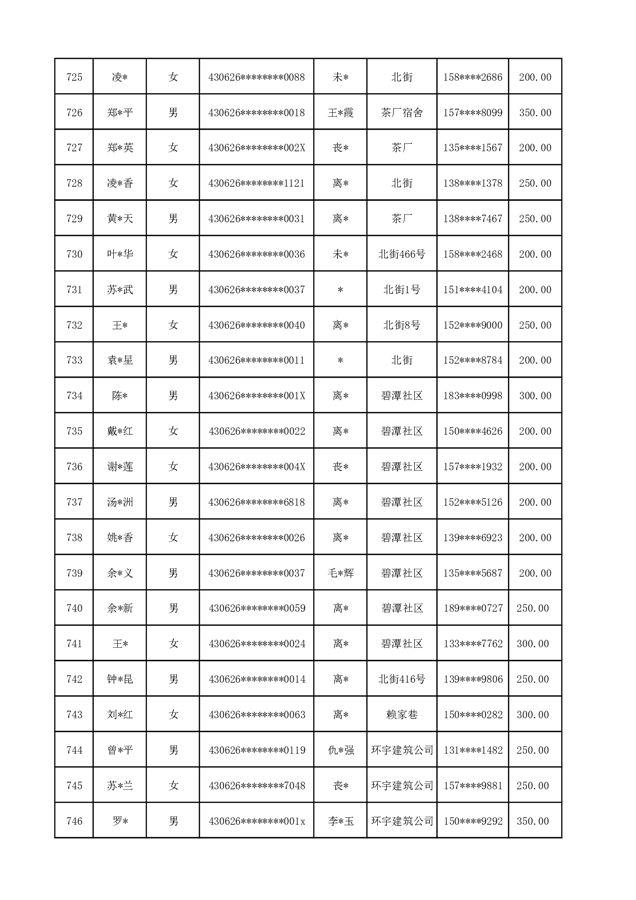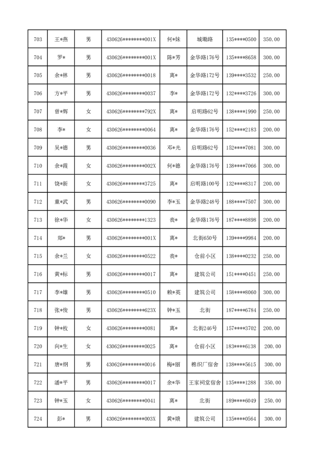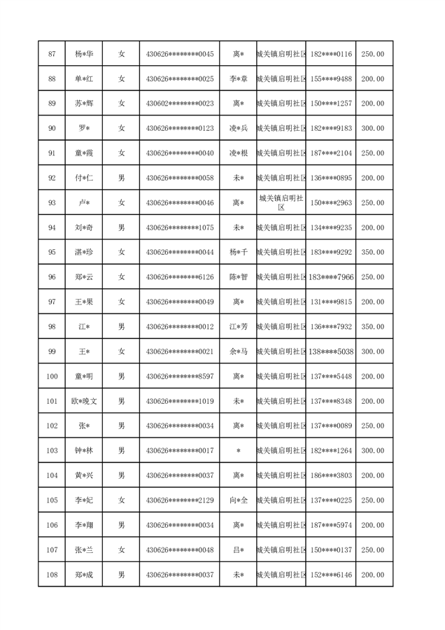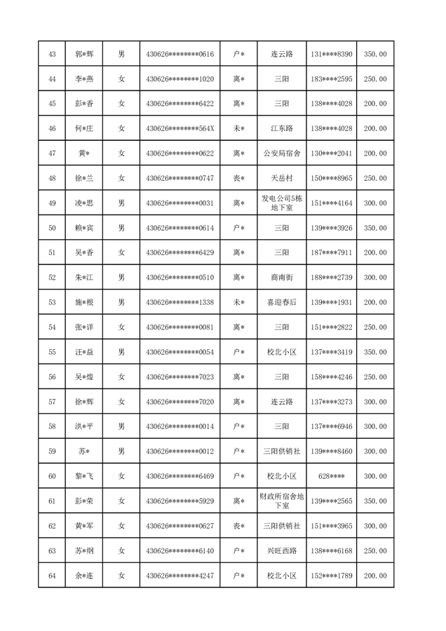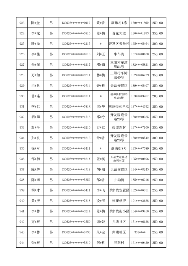 平江县2023年住房租赁补贴发放名册(第一季度) 明细表