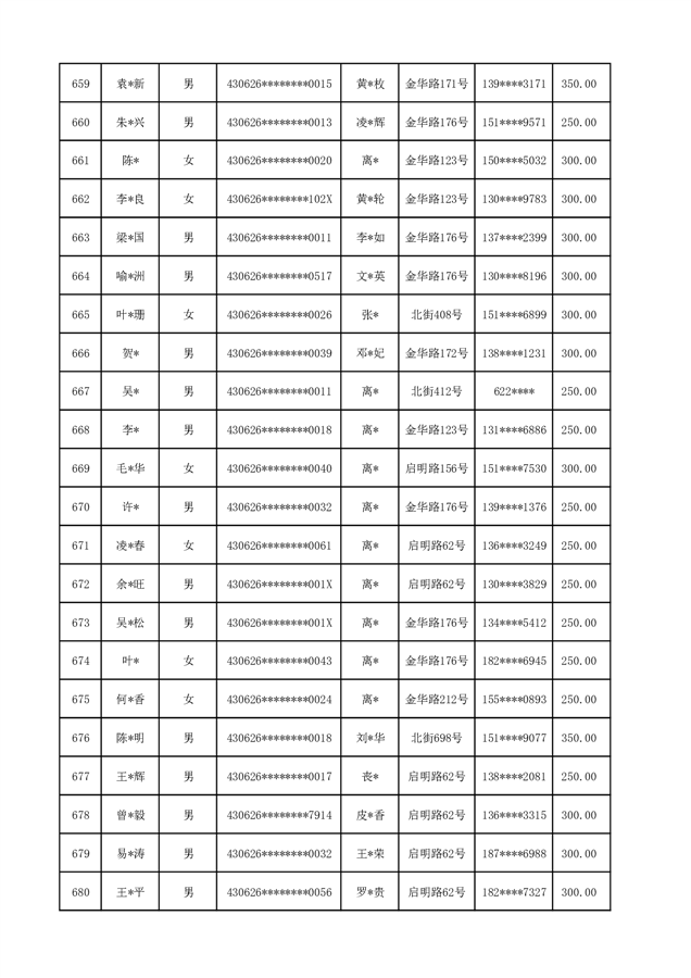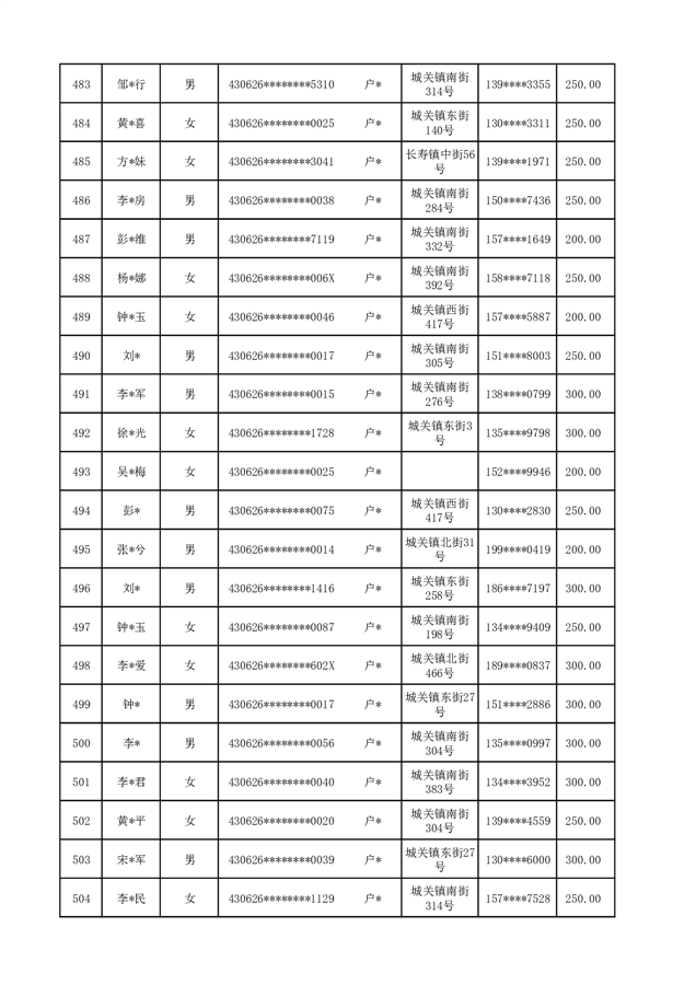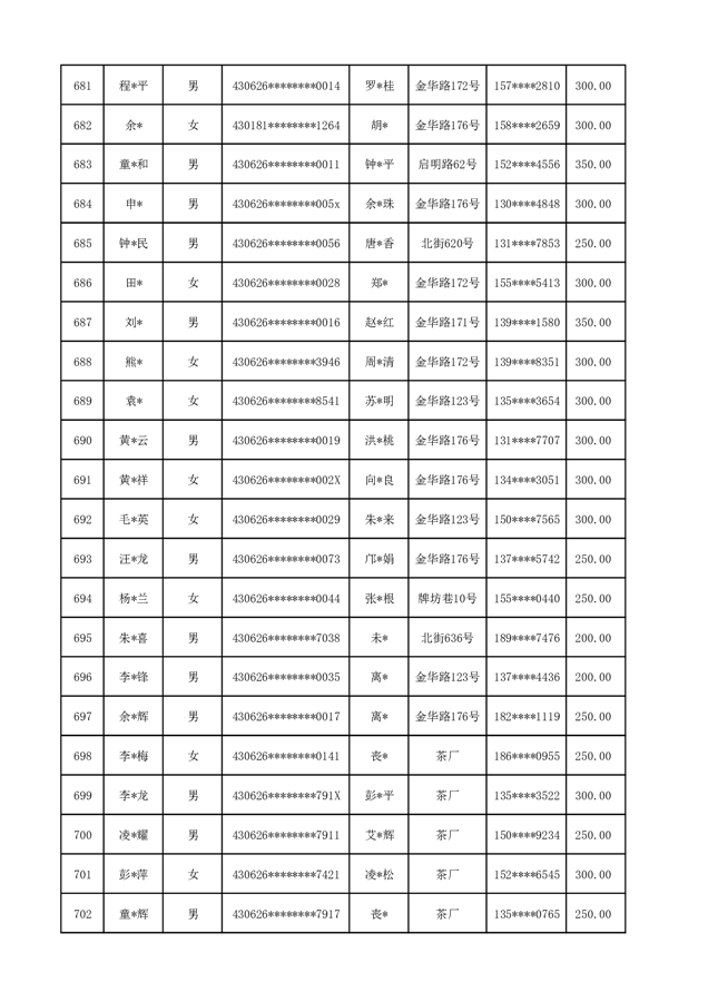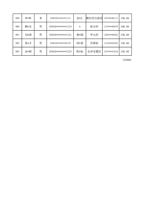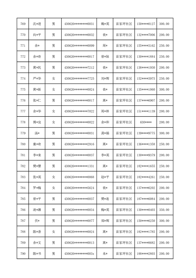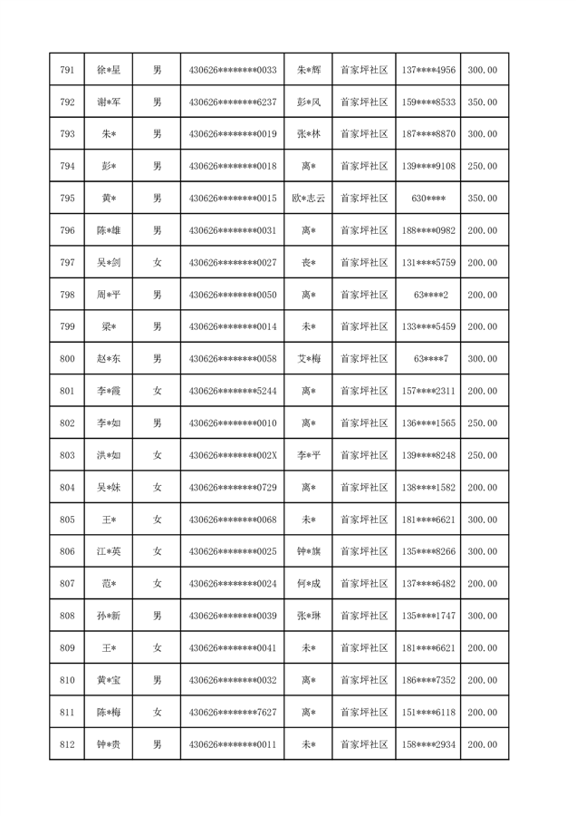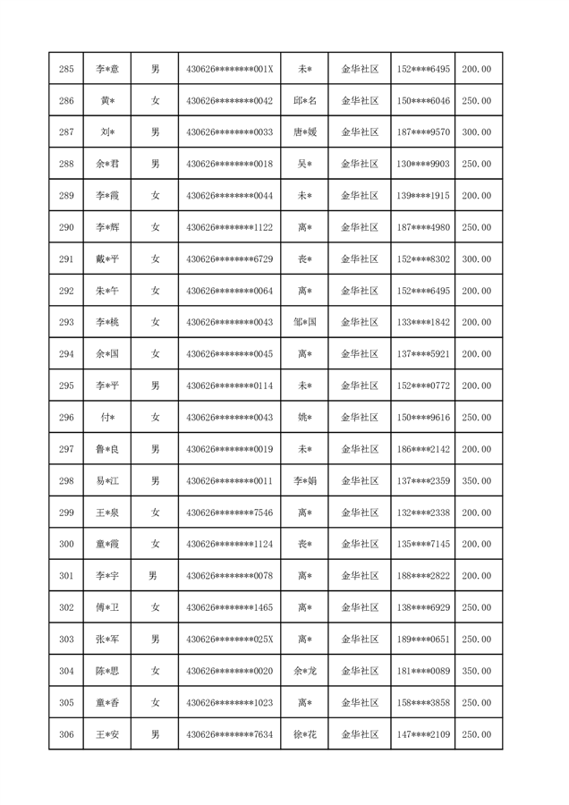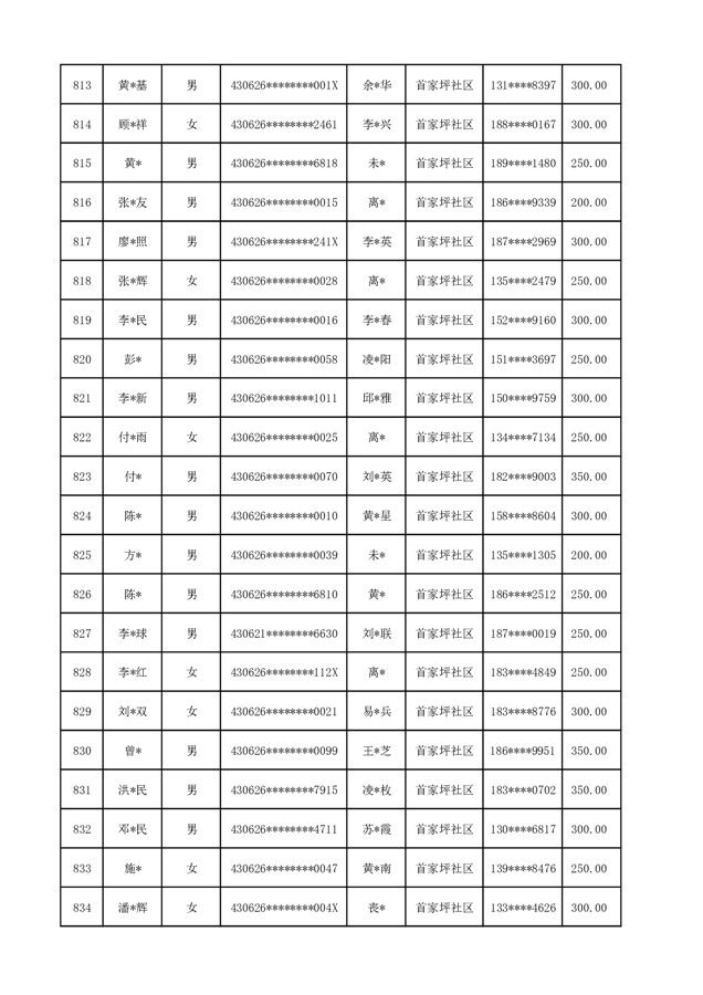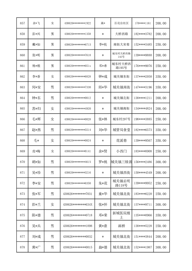 平江县2023年住房租赁补贴发放名册(第一季度) 明细表