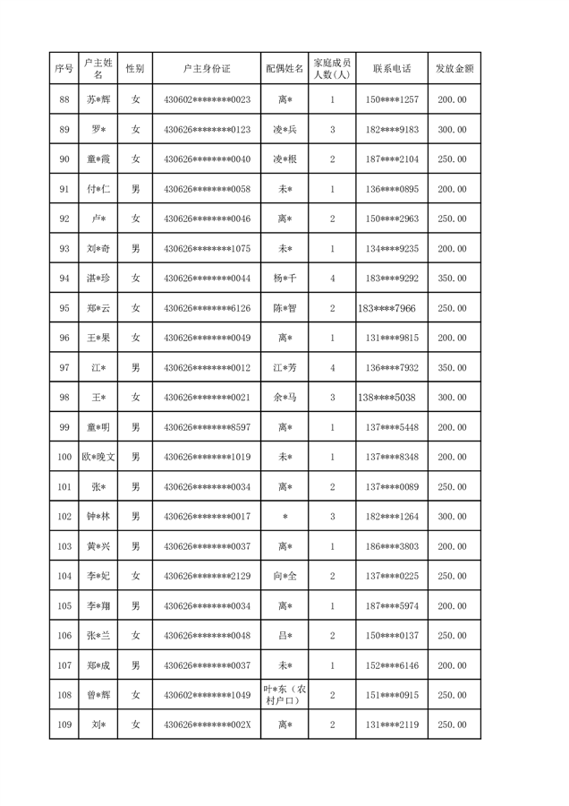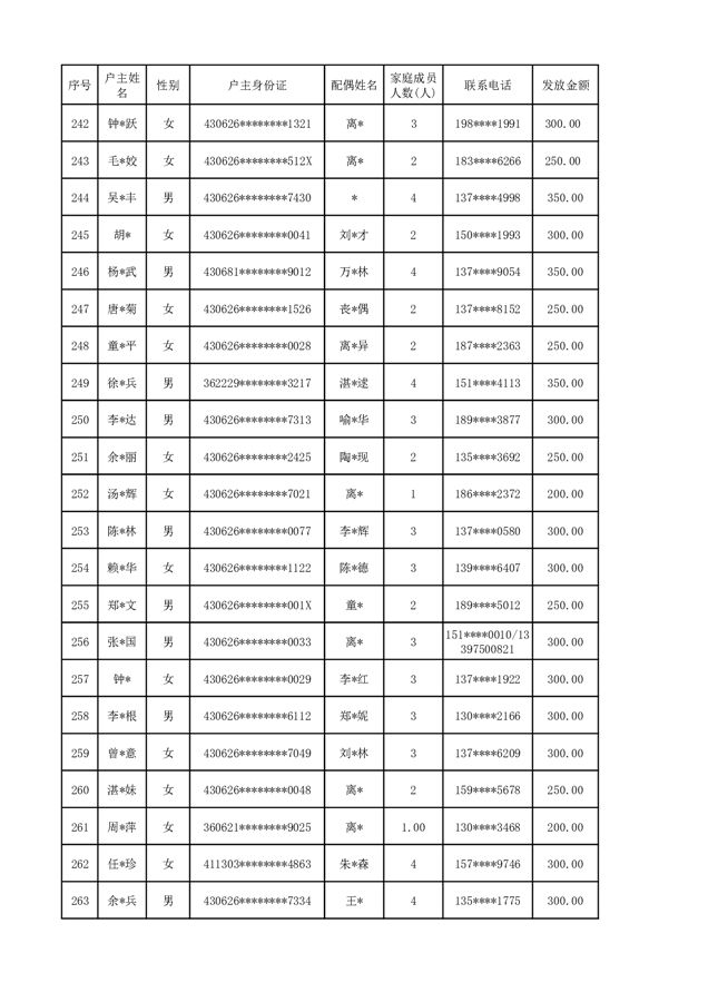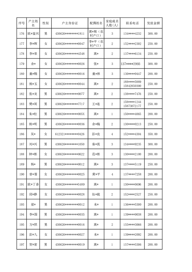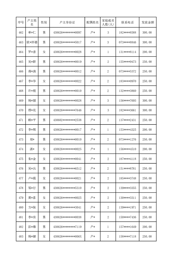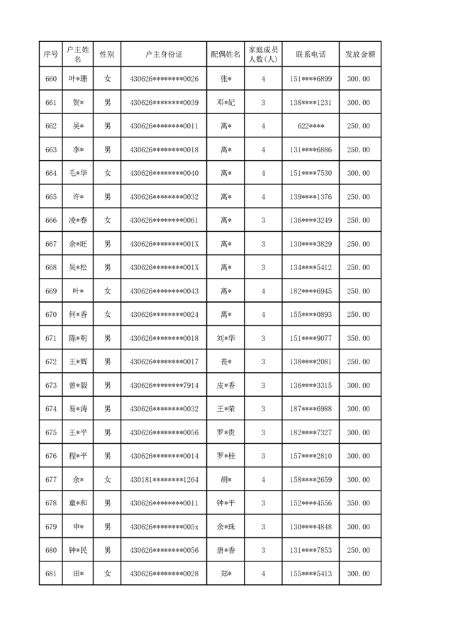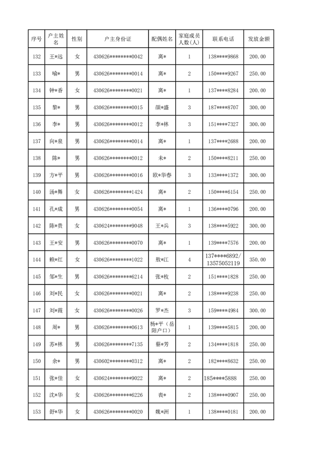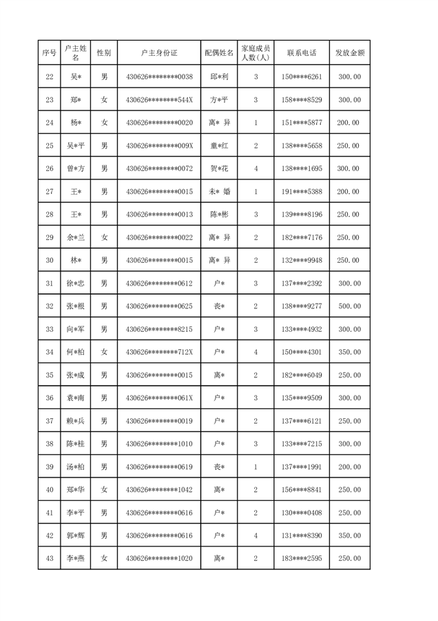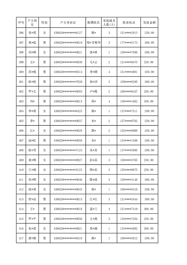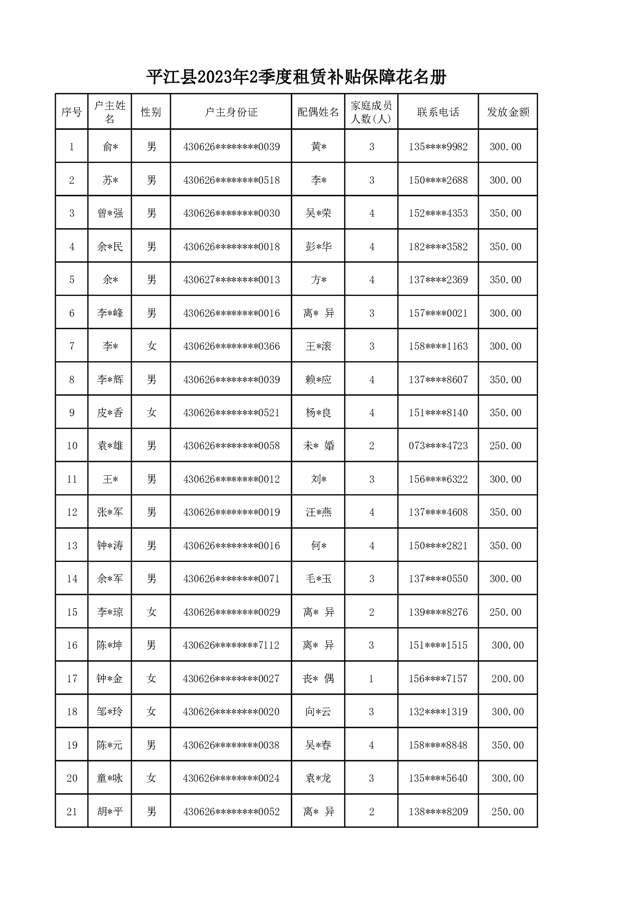 平江县2023年度住房租赁补贴发放名册(第2季度)