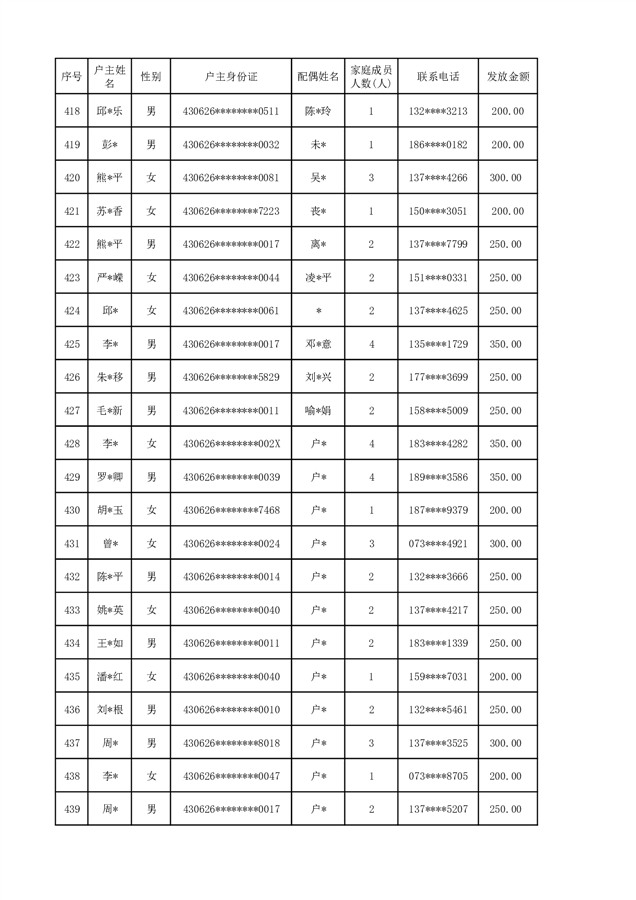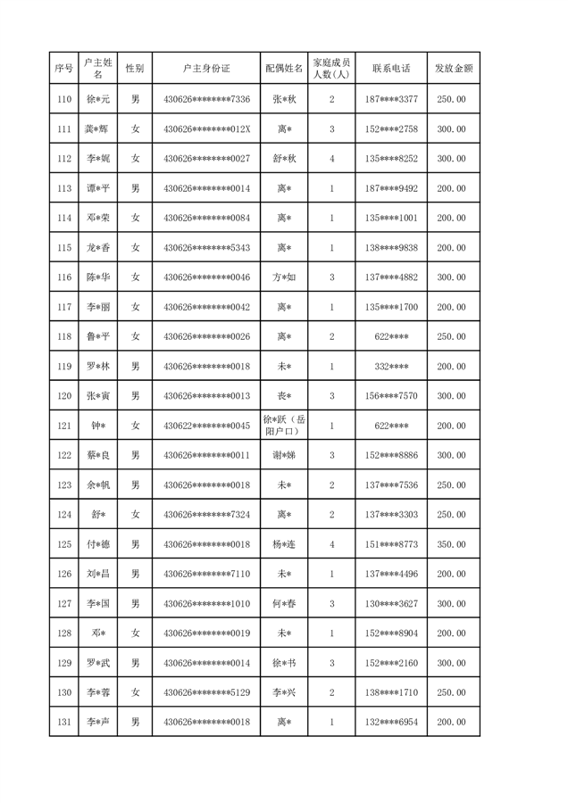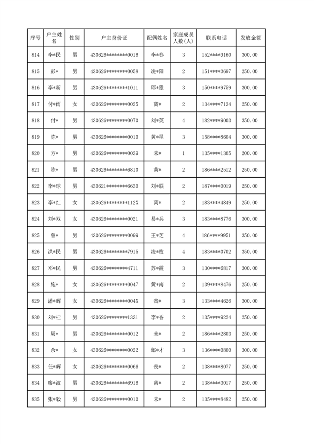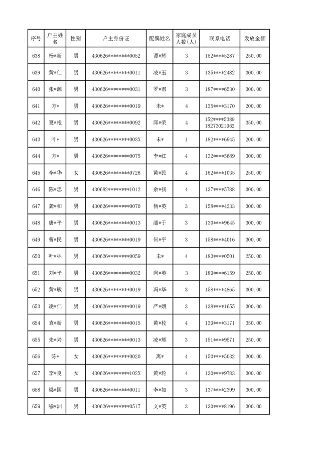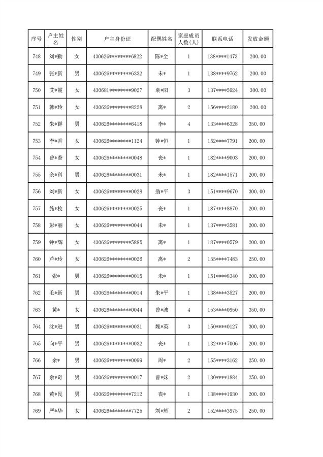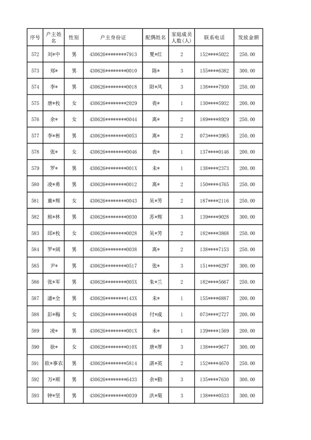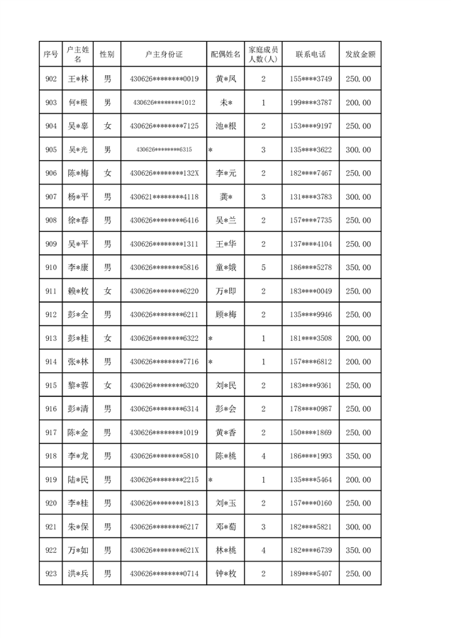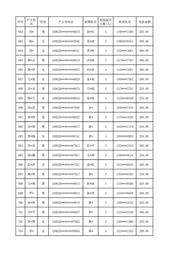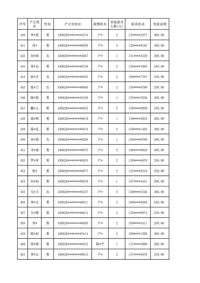 平江县2023年度住房租赁补贴发放名册(第2季度)