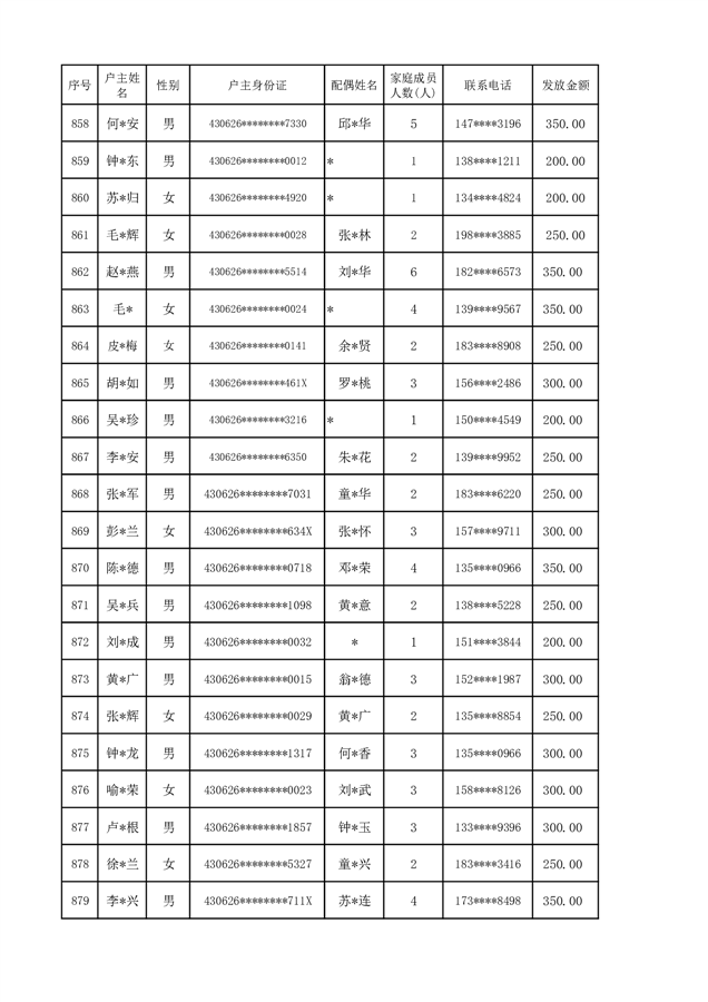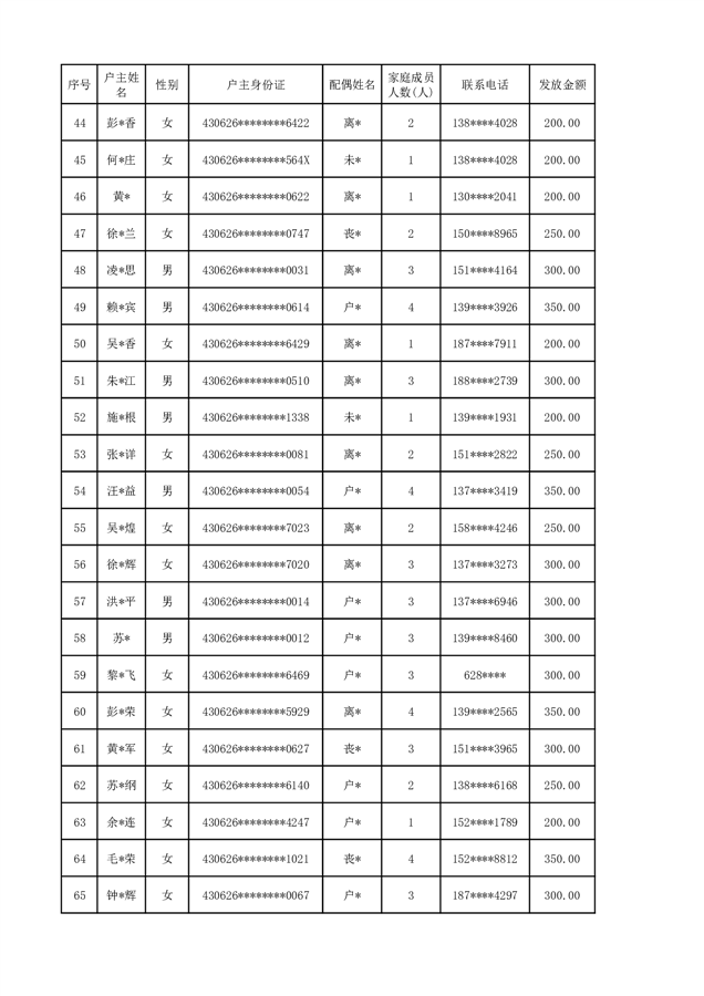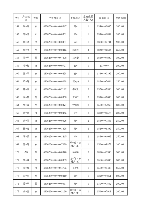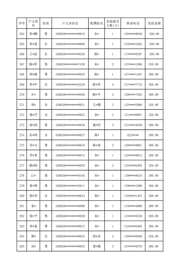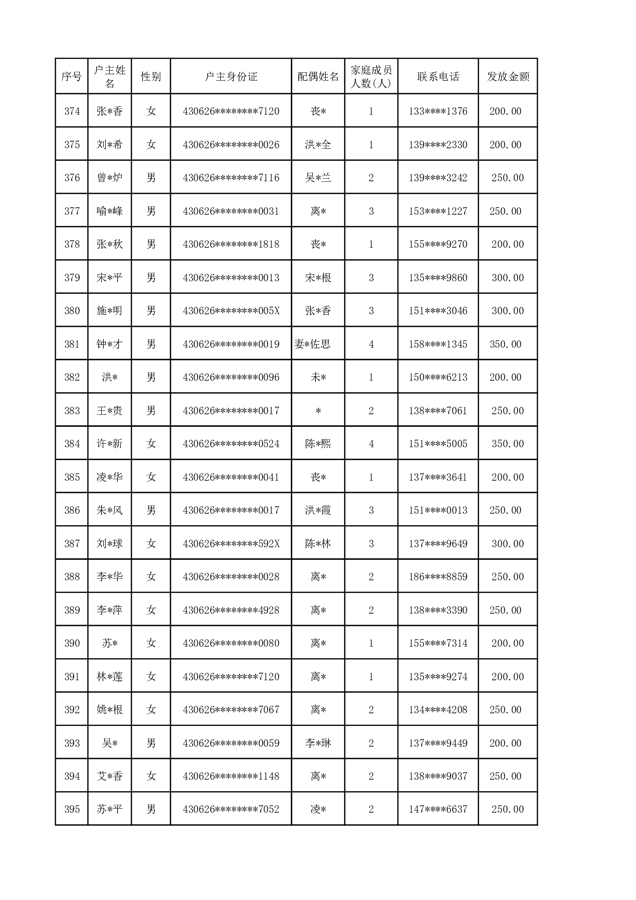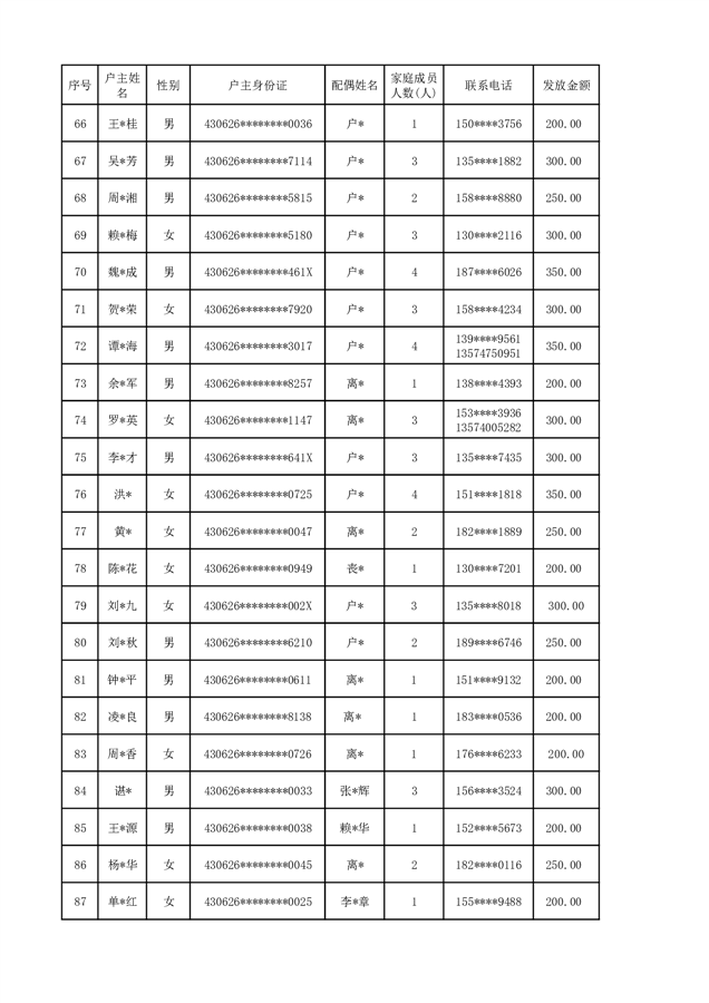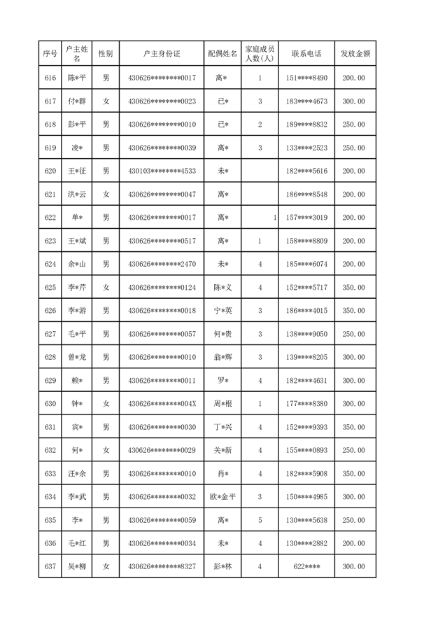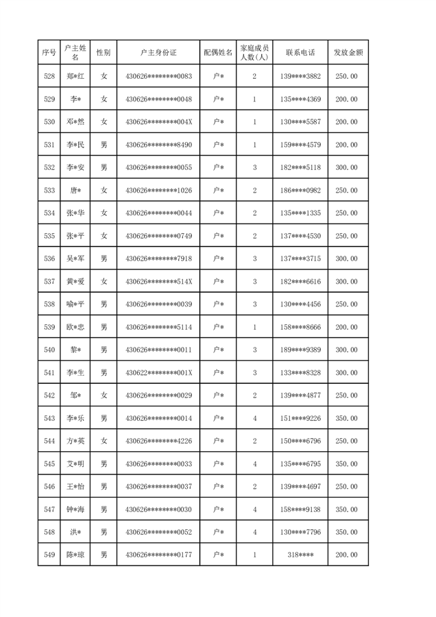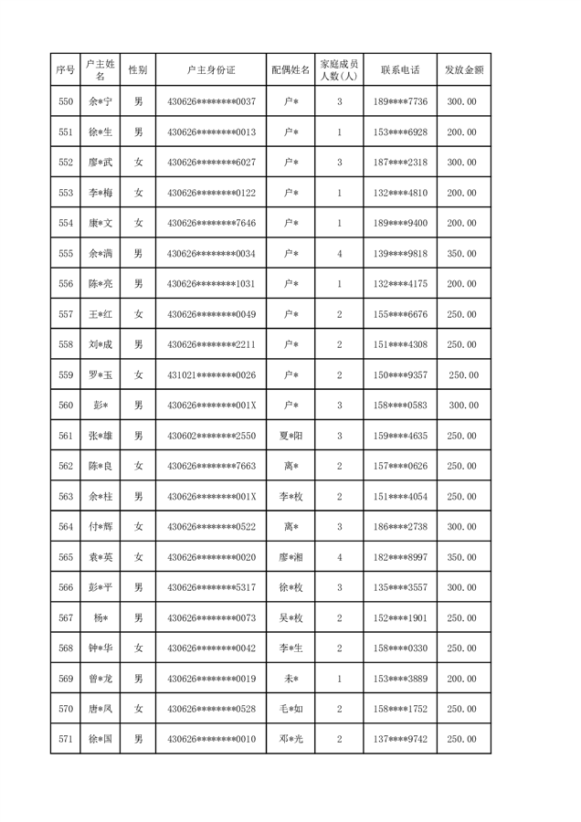 平江县2023年度住房租赁补贴发放名册(第2季度)