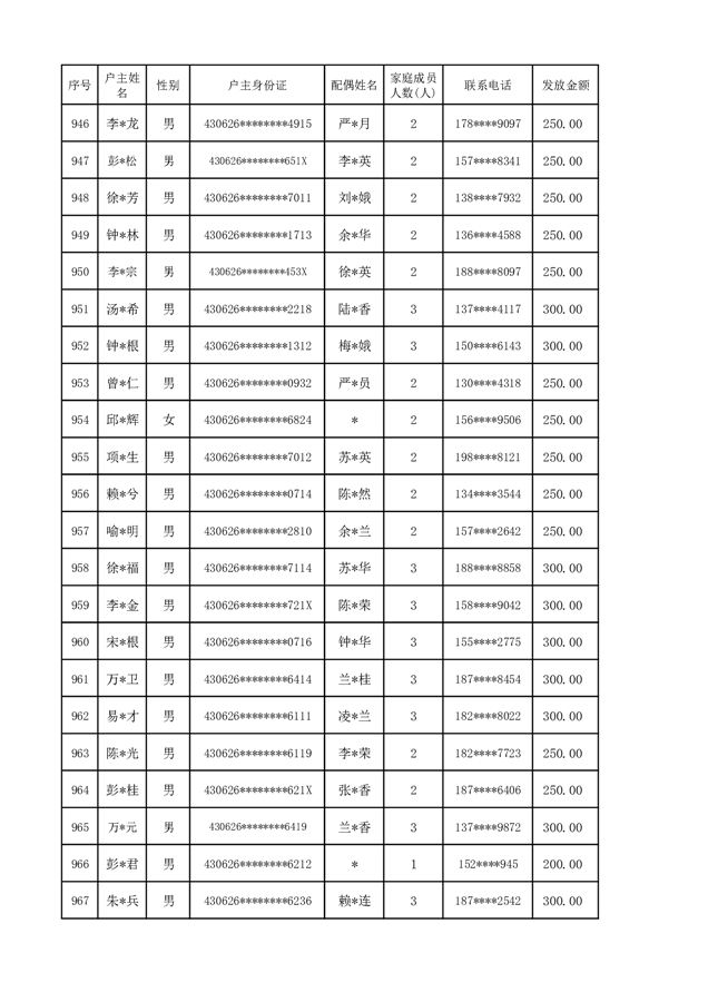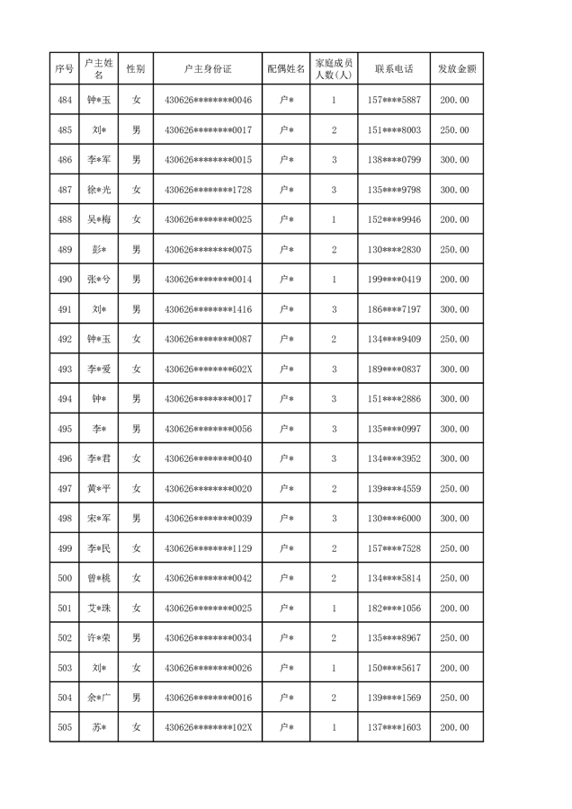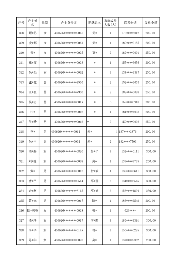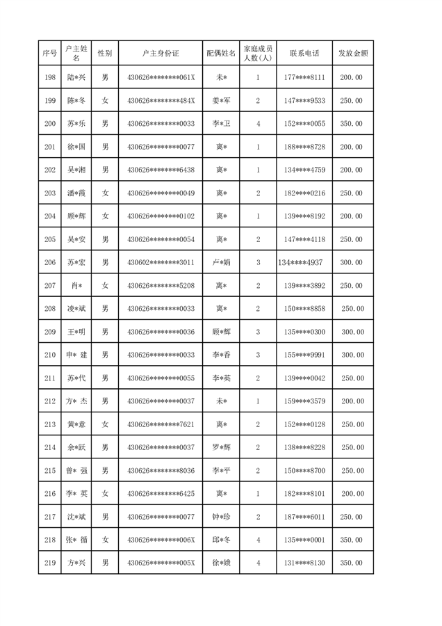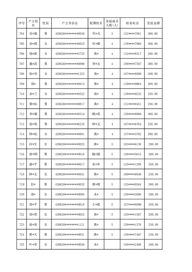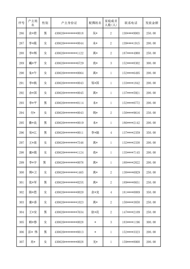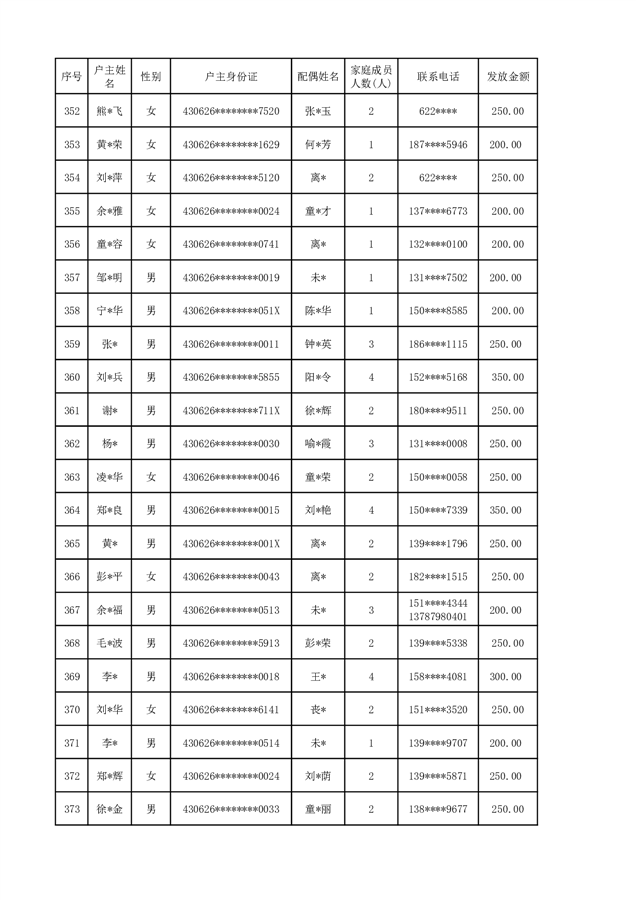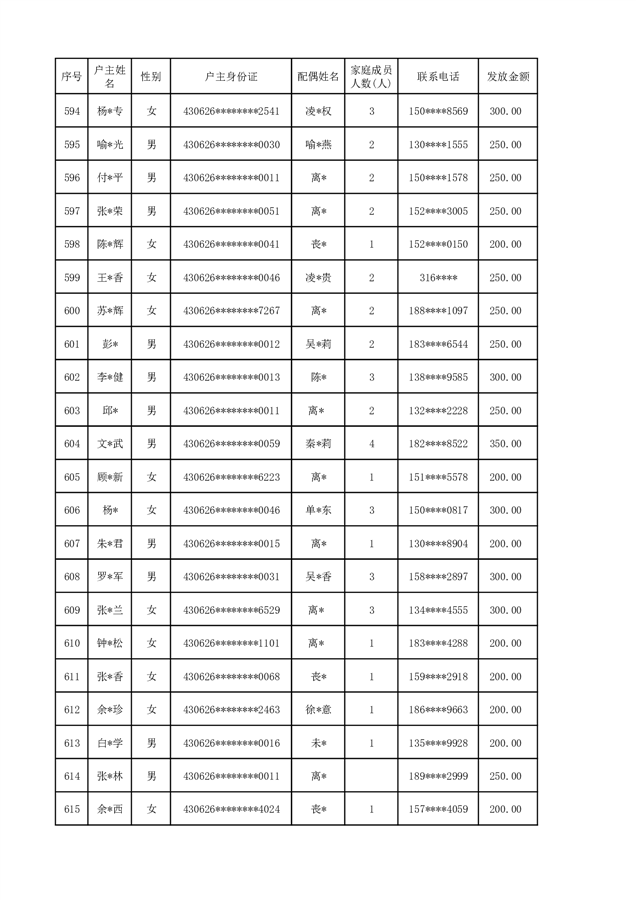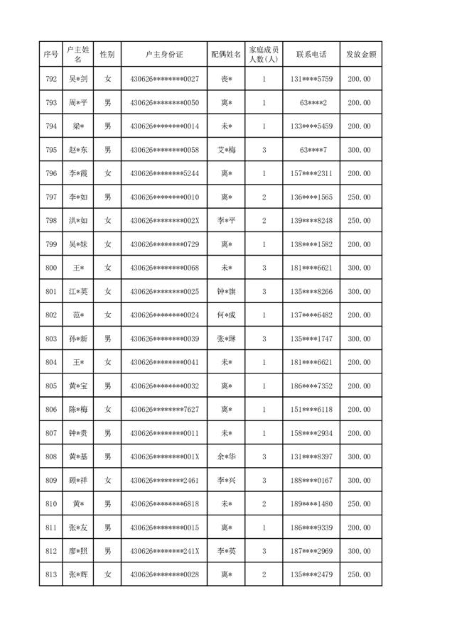 平江县2023年度住房租赁补贴发放名册(第2季度)