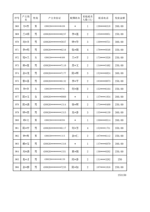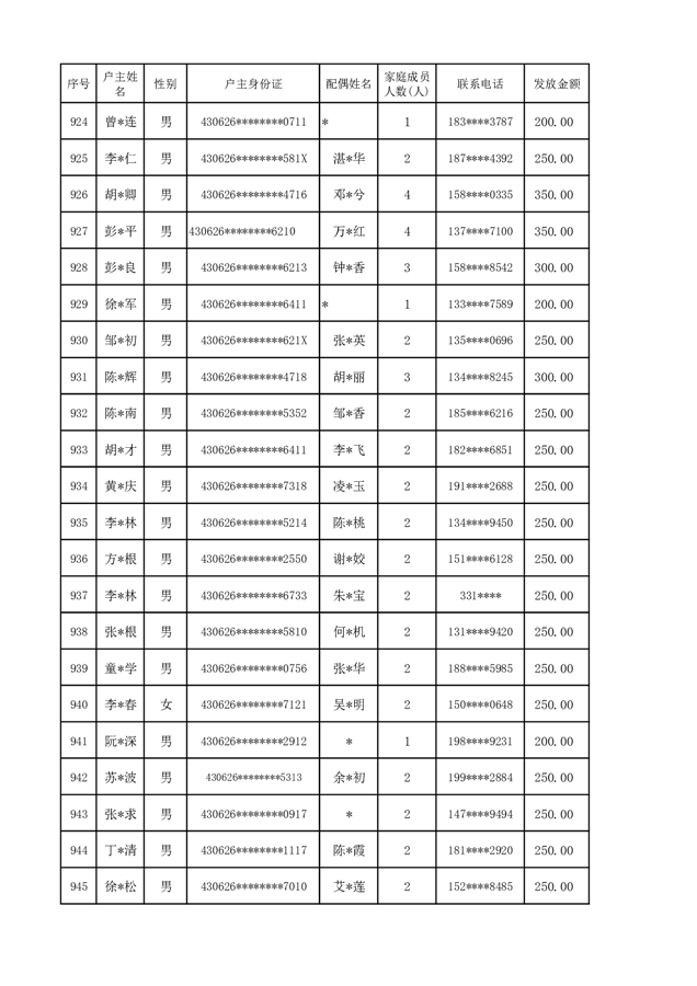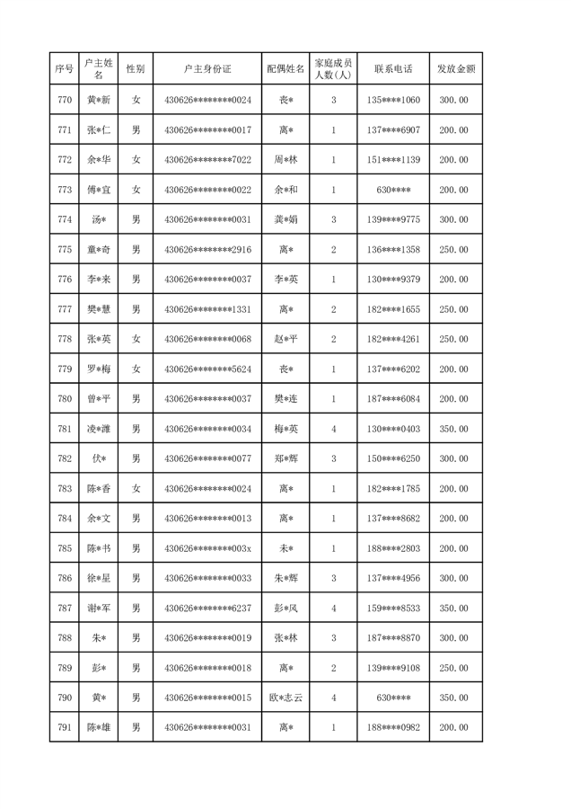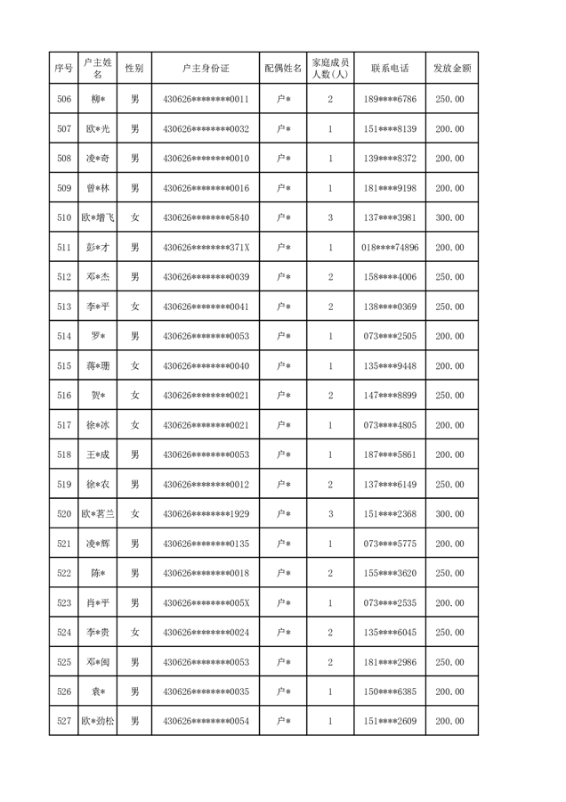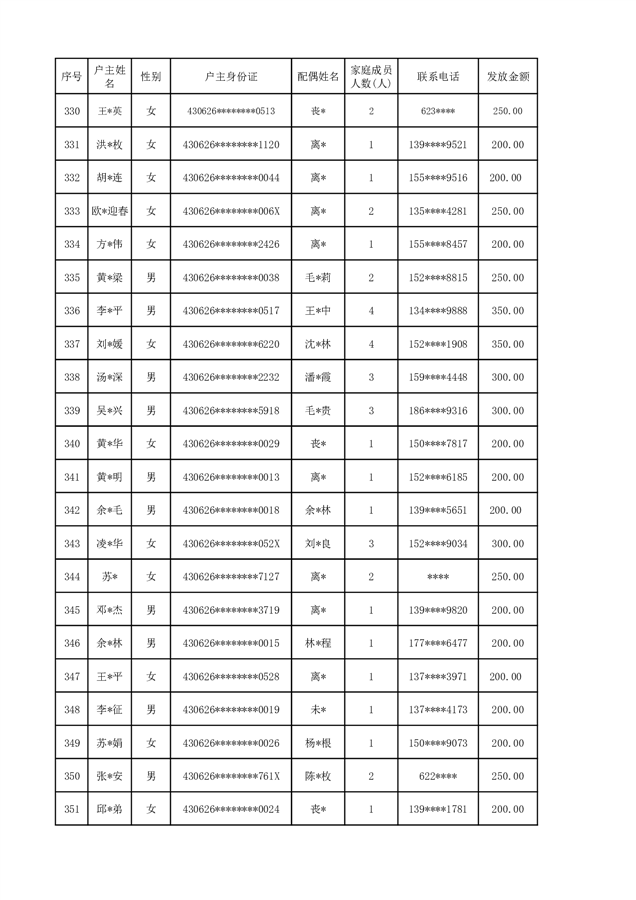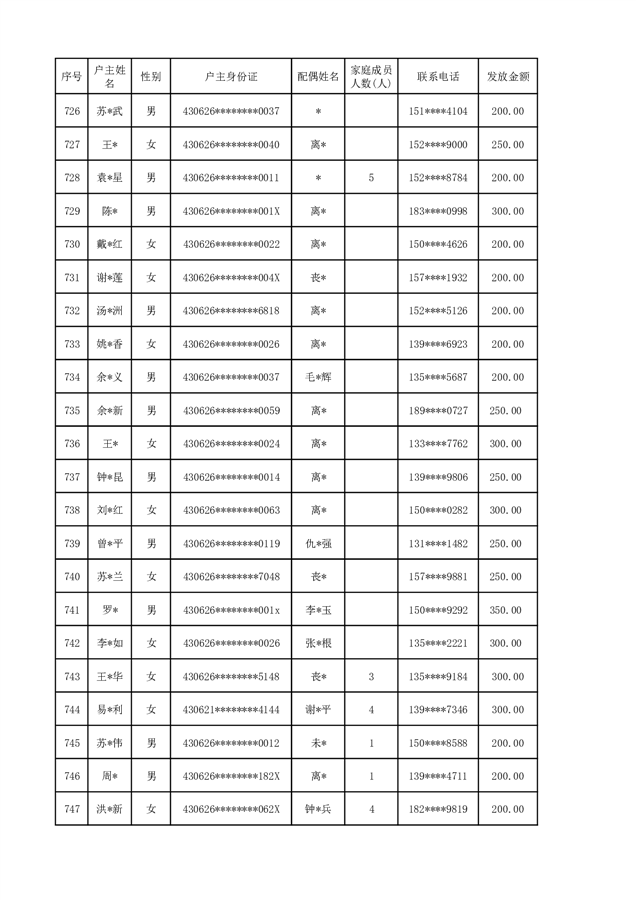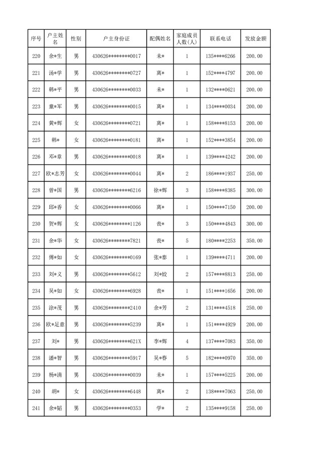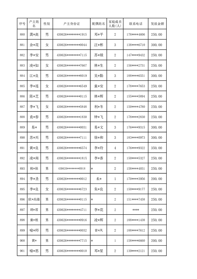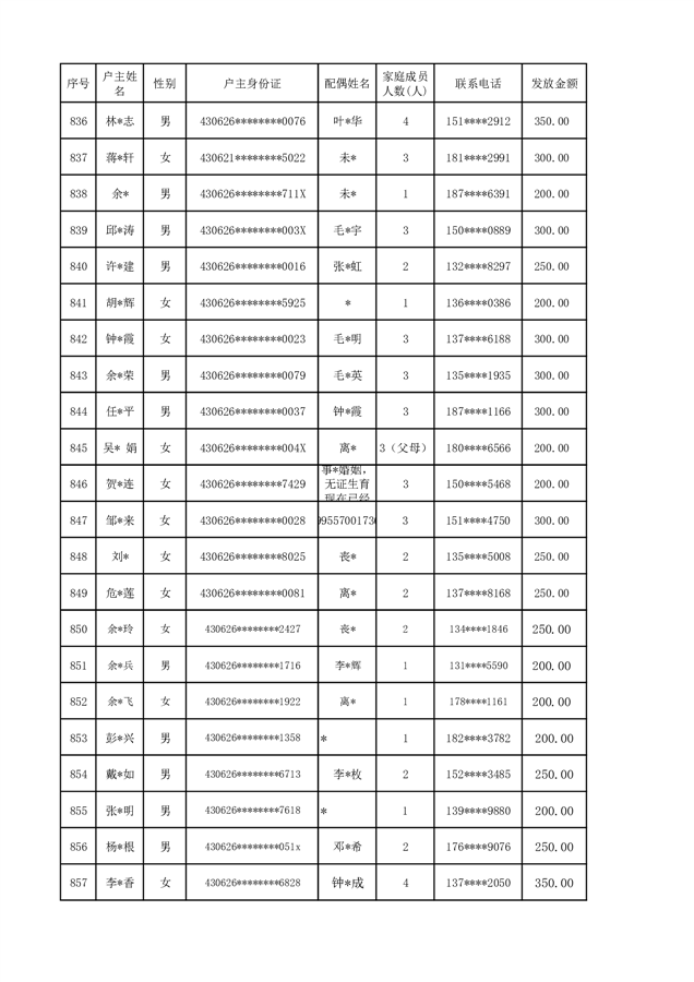 平江县2023年度住房租赁补贴发放名册(第2季度)