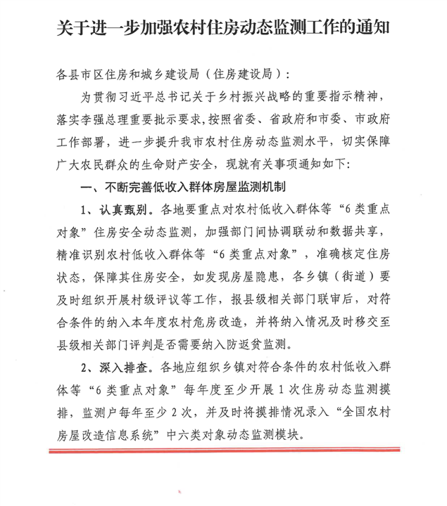 关于进一步加强农村住房动态监测工作的通知