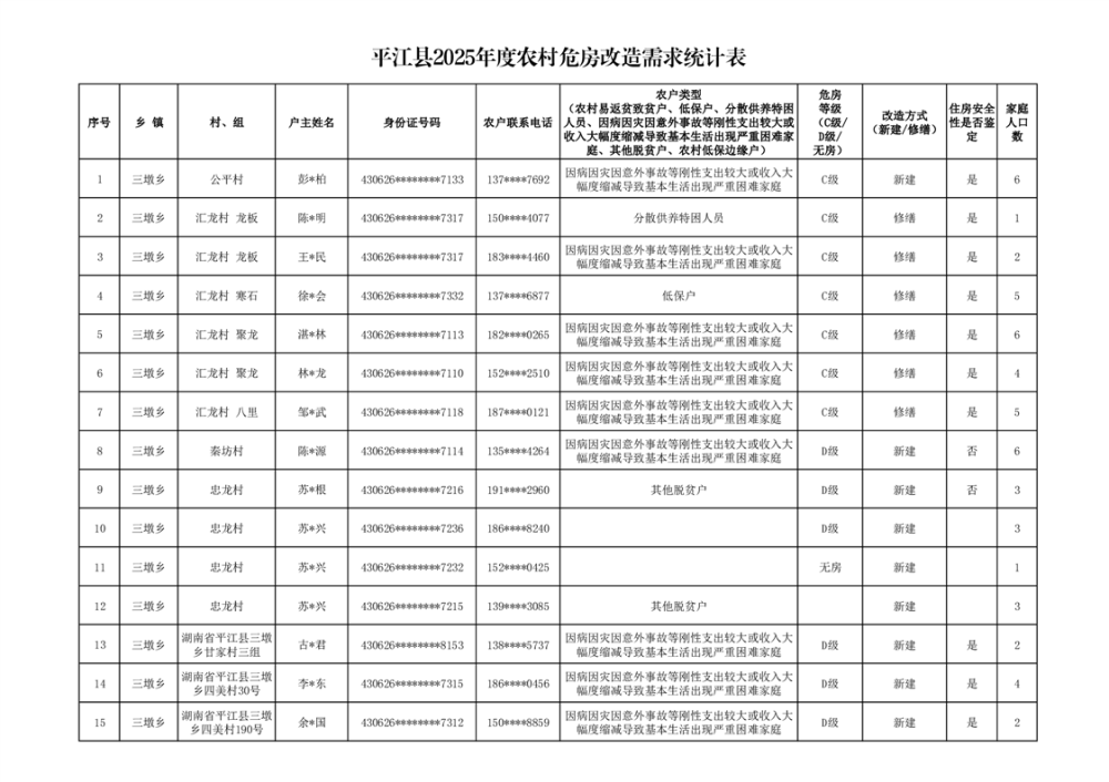 | 公开主体 | 平江县住房和城乡建设局 | ||