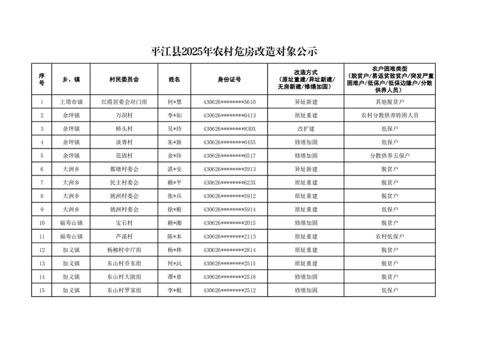 | 公开主体 | 平江县住房和城乡建设局 | ||