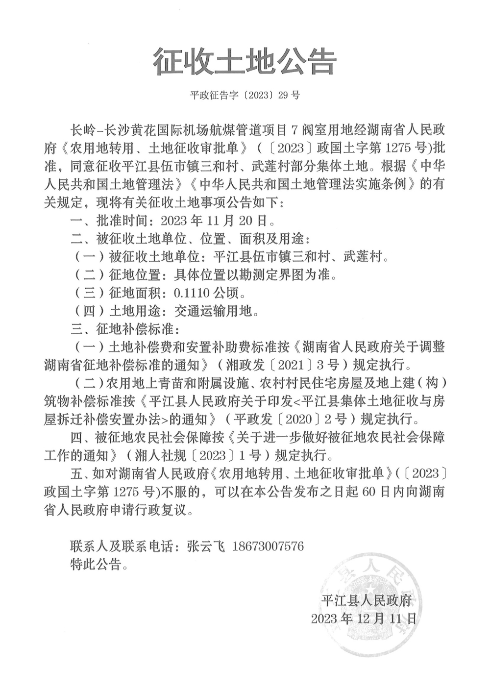 长岭—长沙黄花国际机场航煤管道项目7阀室征收土地公告