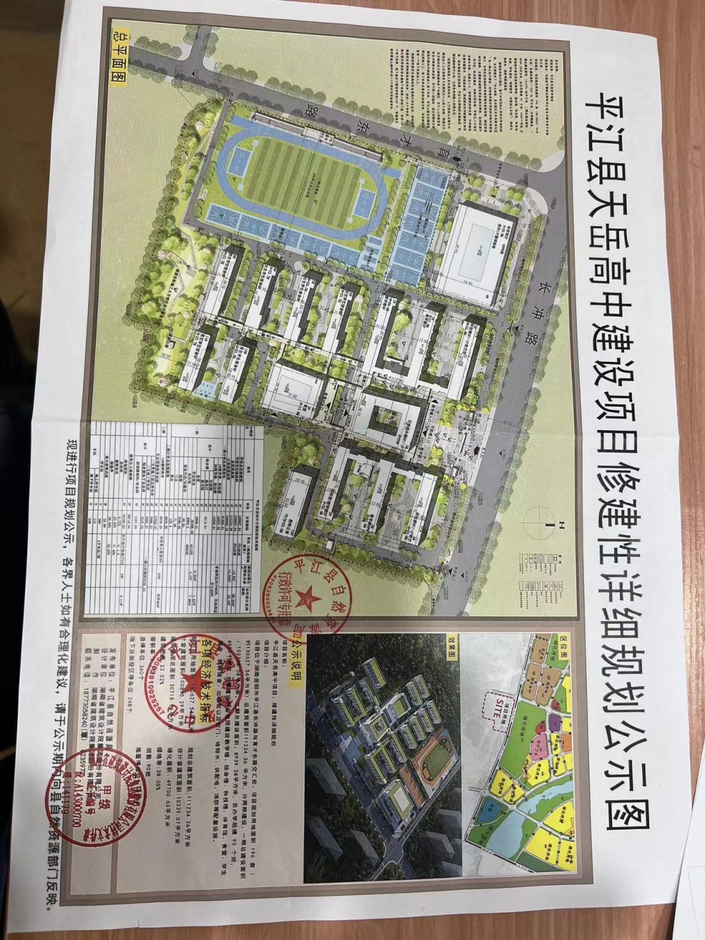 平江县天岳高中建设项目修建性详细规划公示行政许可公告