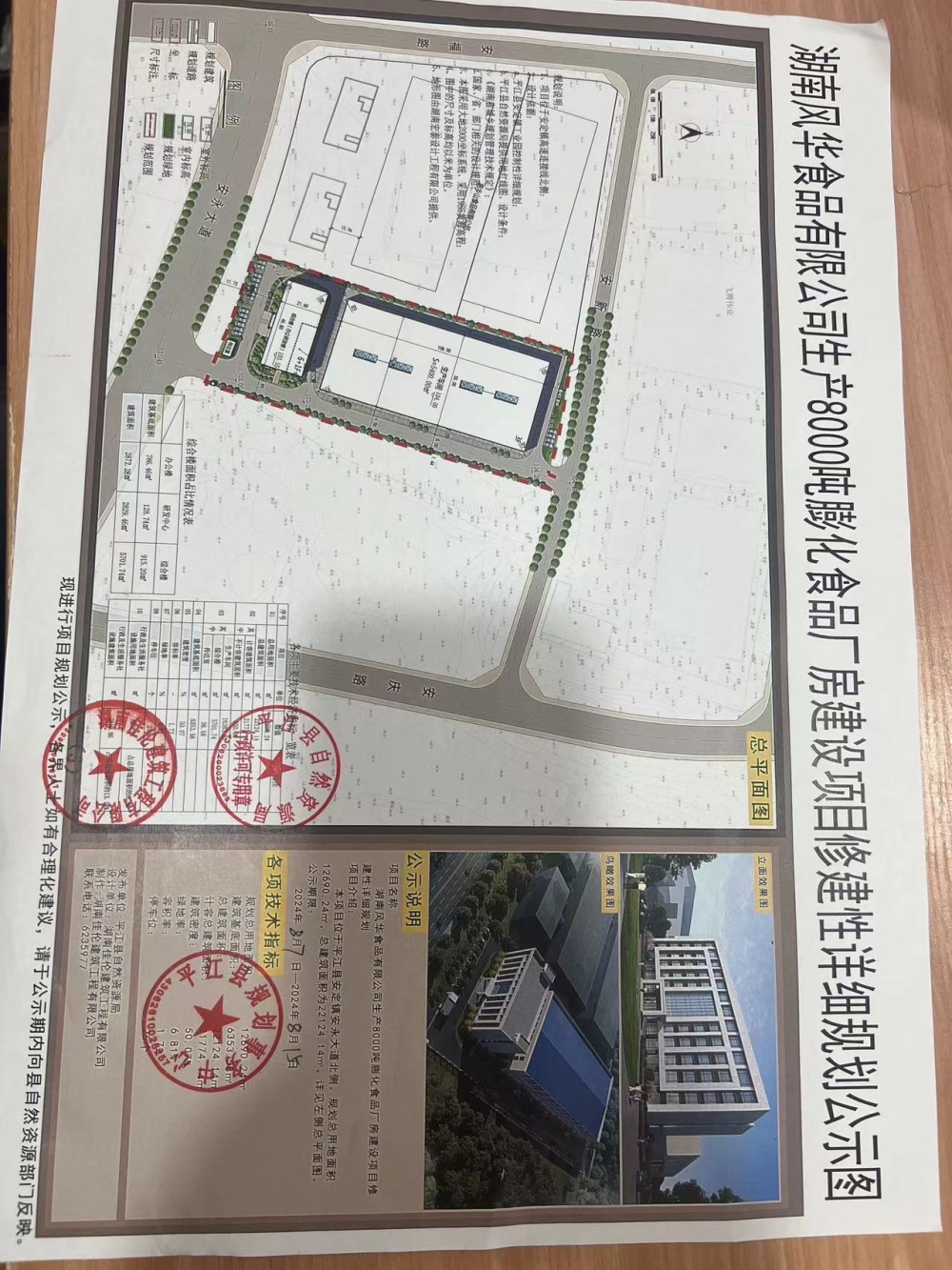 湖南风华食品有限公司生产8000吨膨化食品厂房建设项目修建性详细规划公示行政许可公告
