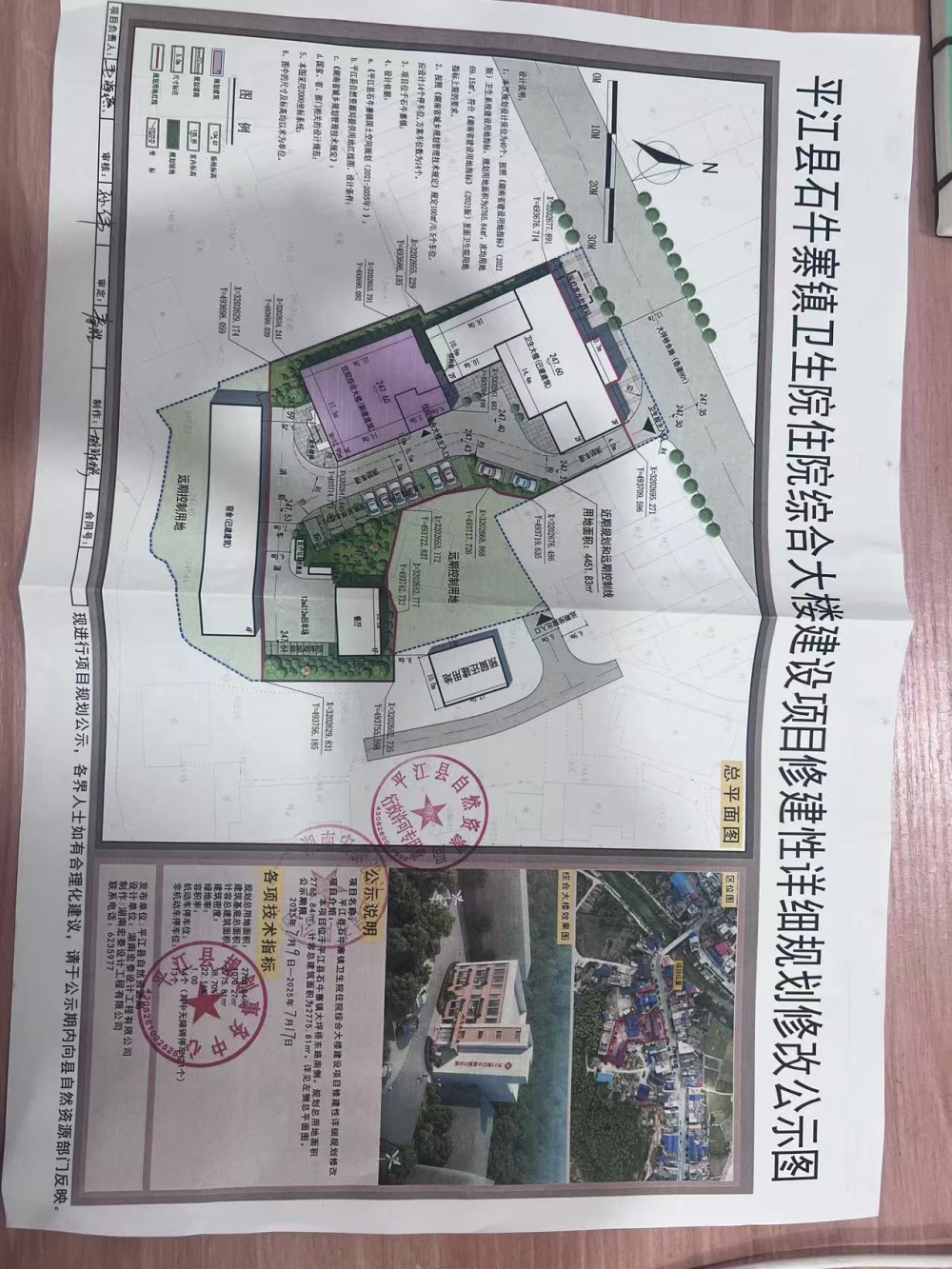 平江县石牛寨镇卫生院住院综合大楼建设项目修建性详细规划规划公示行政许可公告