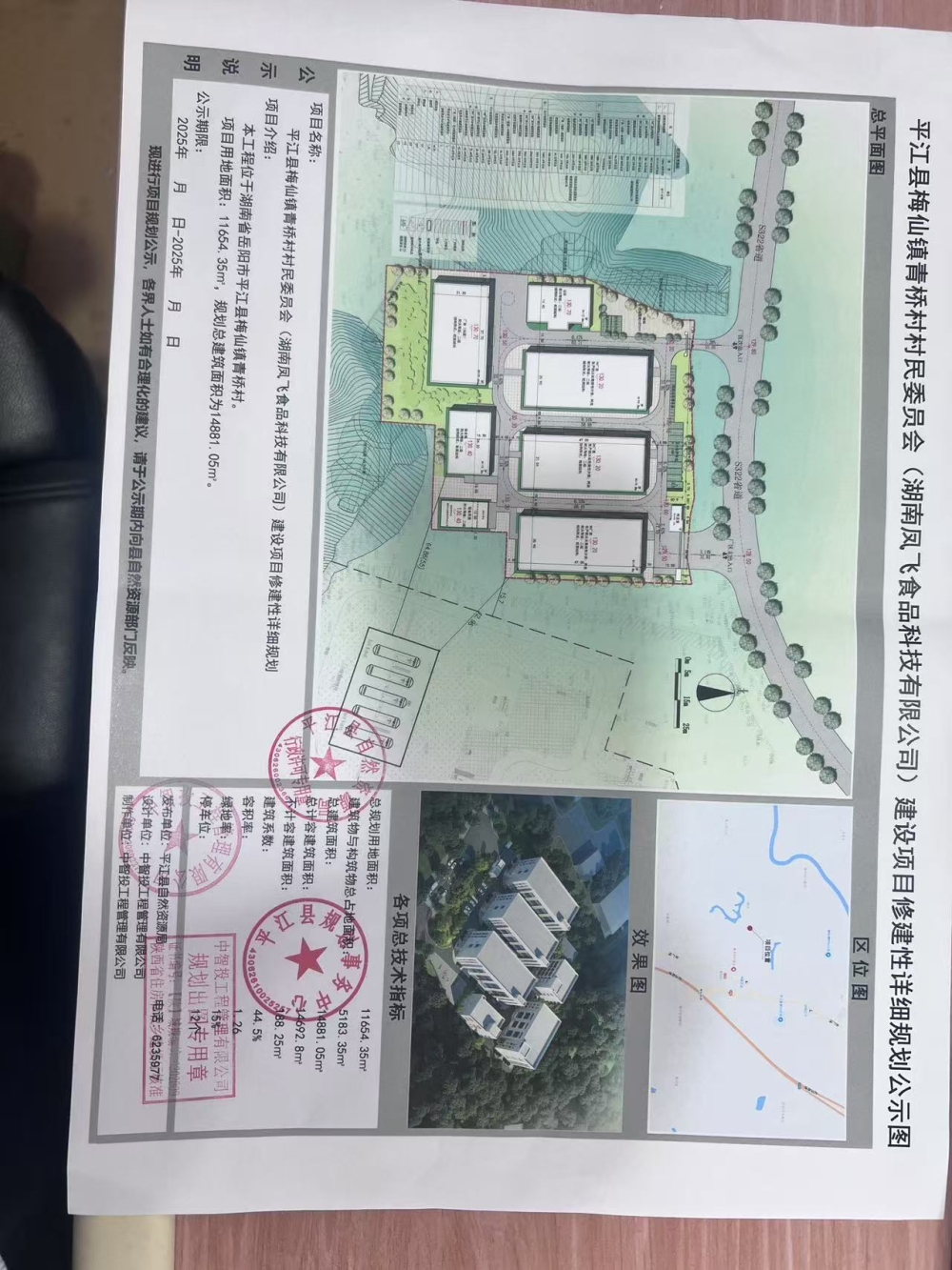 平江县梅仙镇青桥村村民委员会(湖南凤飞食品科技有限公司)建设项目修建性详细规划规划公示行政许可公告
