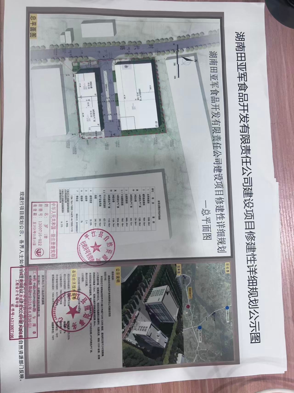 湖南田亚军食品开发有限责任公司建设项目修建性详细规划公示行政许可公告