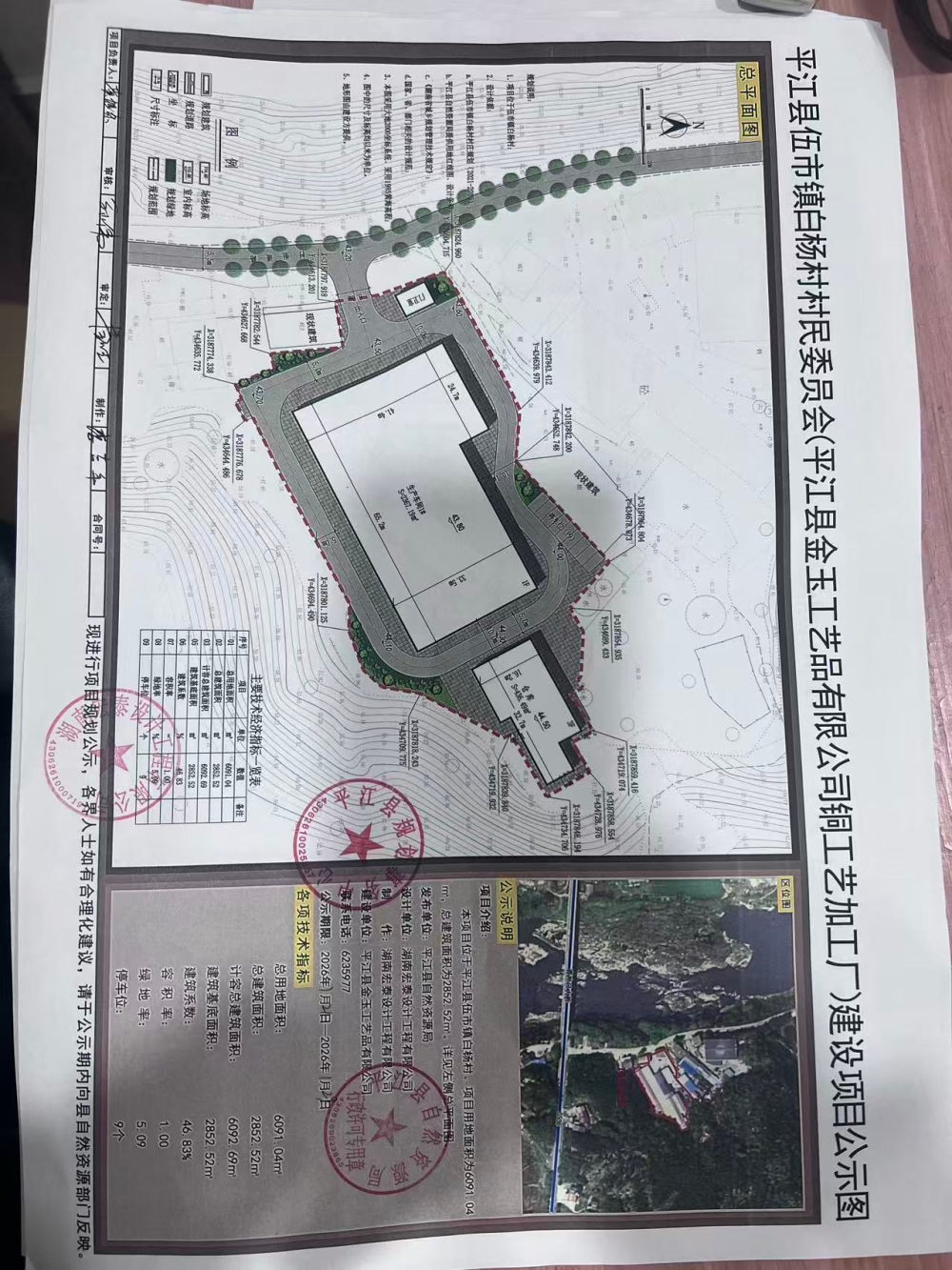 平江县伍市镇白杨村村民委员会《平江县金玉工艺品有限公司铜工艺加工厂)建设项目修建性详细规划公示行政许可公告