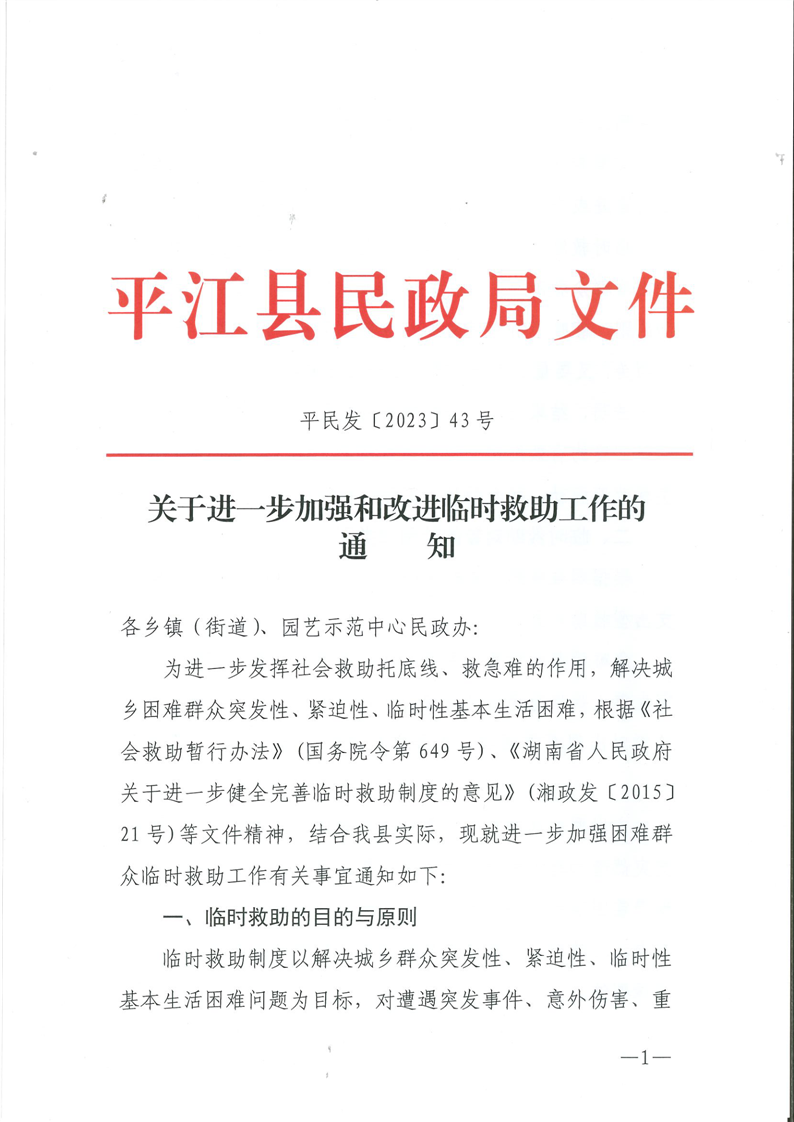 关于进一步加强和改进临时救助工作的通知