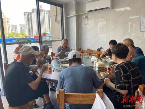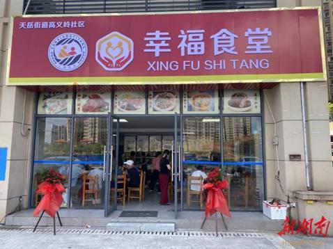 一碗一盘,不仅盛满了日常的温饱所需,更承载着对老年群体生活质量的深切关怀;一粥一饭,细细品味间,透露出晚年生活的温馨与幸福。 如今,“做饭难”“吃饭难”等问题逐渐成为高龄、空巢和生活不能自理老人的居家养老难题,老年助餐服务也成了老年人关心的“关键小事”和事关千万家的“民生大事”。 天岳街道高义岭社区坚持问题导向,践行“5920”工作法,探索康养中心+助老食堂新模式,盘活现有闲置铺面建设2个幸福食堂和1个康养中心,破解老人就餐难问题,做到“小食堂”大民生,用心用力用情托起幸福“夕阳红” 幸福食堂飘出暖心味 走进幸福食堂,桌椅摆放得整整齐齐,空调提前开启,角落还挂有饮食健康小知识宣传栏,提醒老人们注意营养均衡。 “我们的伙食标准是9菜1汤,荤素搭配,菜品全都减盐减糖减油,考虑到老年人的基础疾病,还会专门做几道养生菜,比如山药、苦瓜等,保证优质、价廉、卫生。”餐厅工作人员说道。 每天11点左右,餐厅工作人员就会将每天的菜谱和饭菜照片发至幸福食堂微信群中,老人们便纷纷前往食堂,打卡或扫脸后,就可以拿着餐盘自行盛菜。 “家门口”有了食堂,老人们最大的感受就是一日三餐不用对付了,想吃啥就买啥,吃完了餐盘一收拾连碗筷都不用刷。