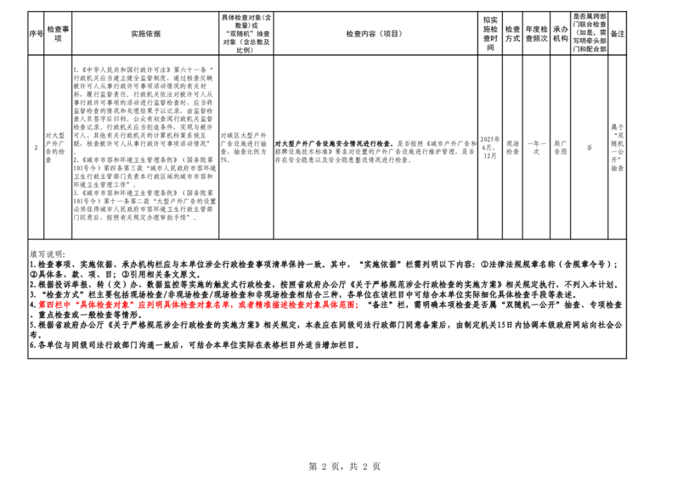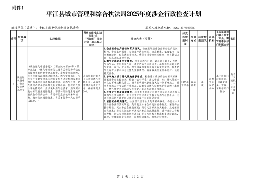 平江县城市管理和综合执法局 2025年度涉企行政检查计划