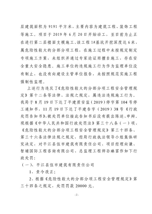 行政处罚决定书平建行罚字(2019)38号