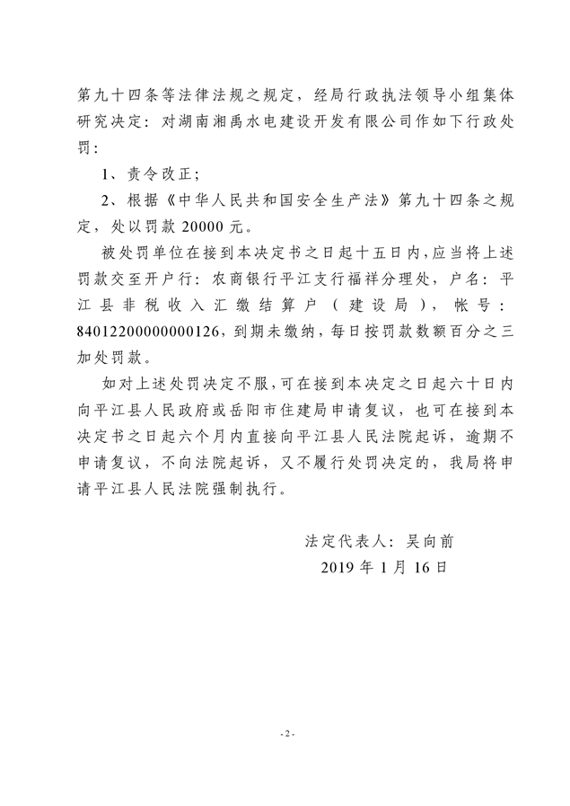 行政处罚决定书平建行罚字(2019)02号