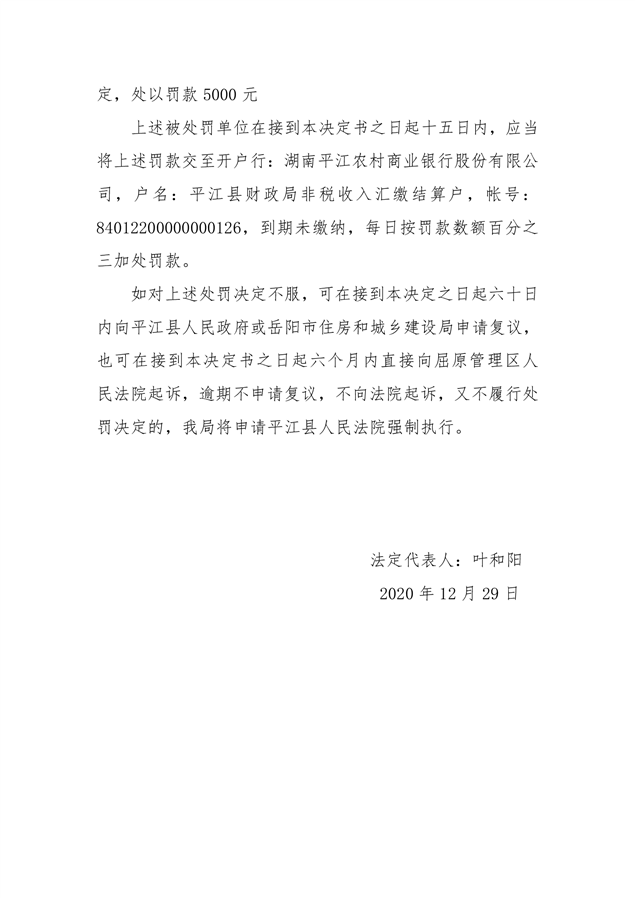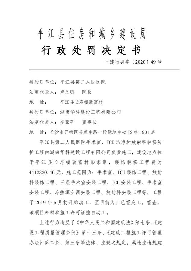 行政处罚决定书平建行罚字(2020)49号