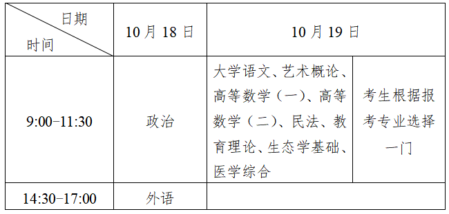 2. 专科起点升本科考试时间表(每科考试150分钟)