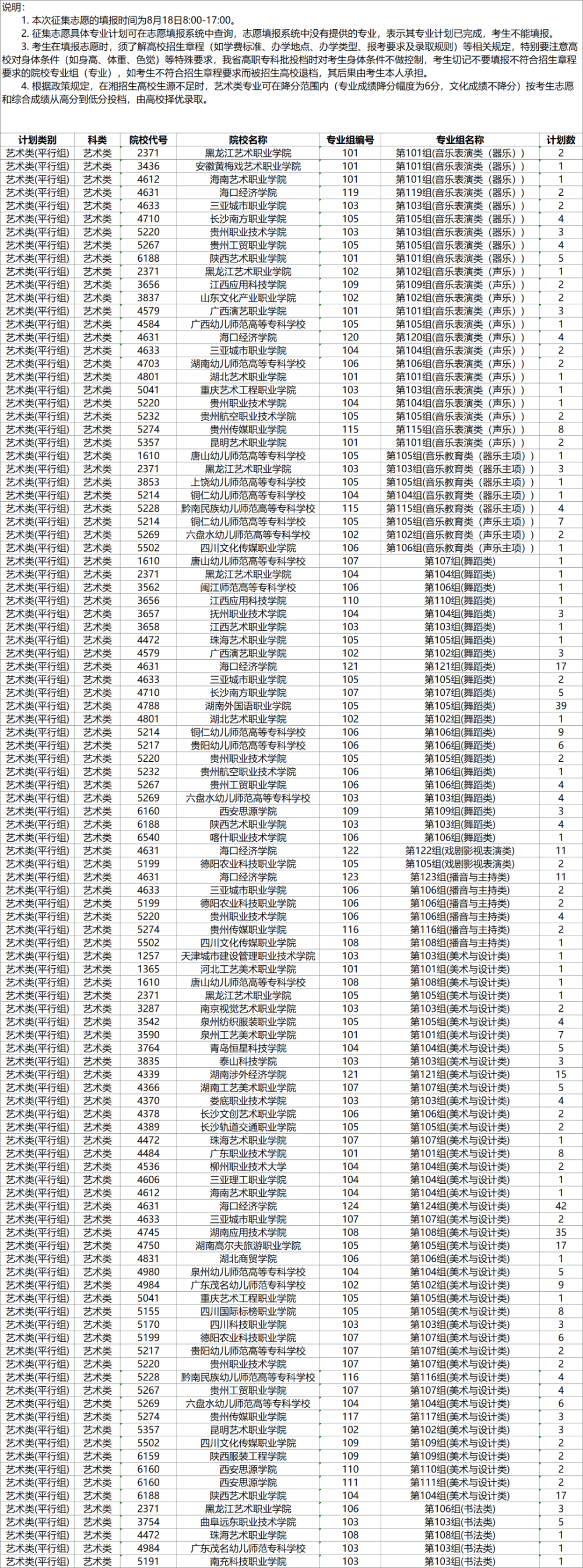 湖南省2025年普通高校招生高职专科批(艺术类)第二次征集志愿国家任务计划