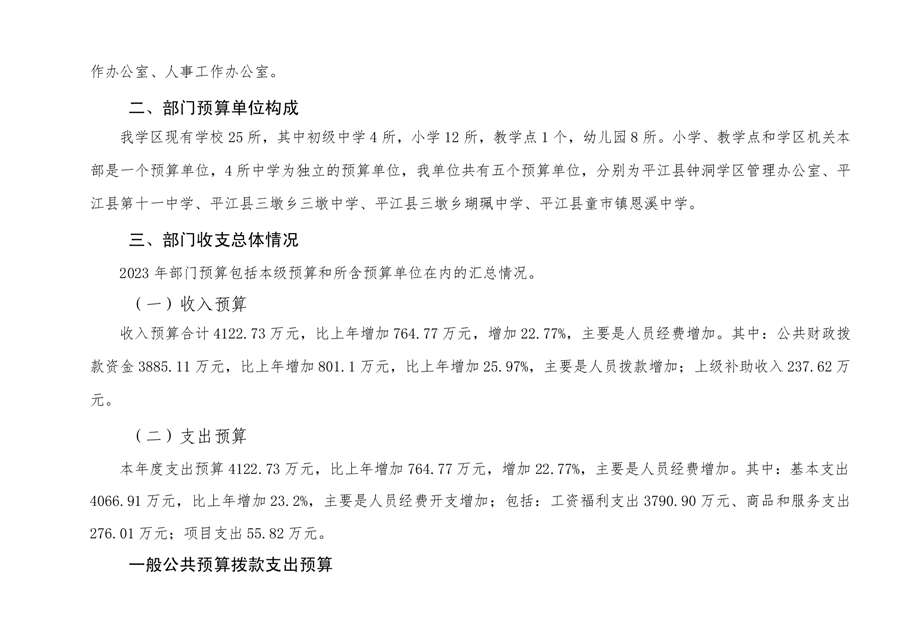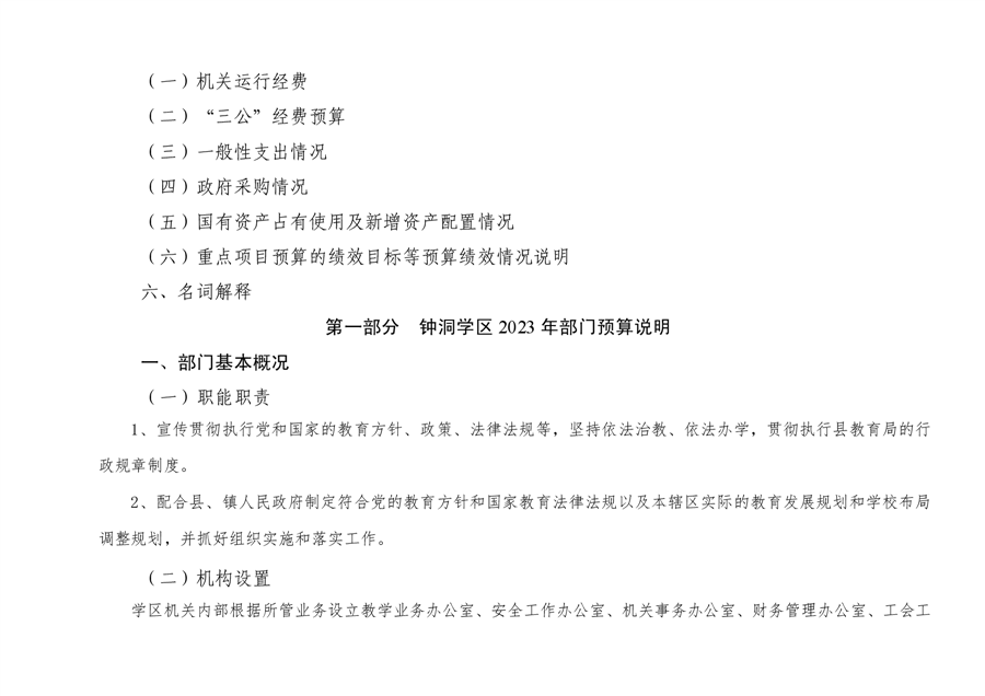 钟洞学区2023年部门预算编制说明