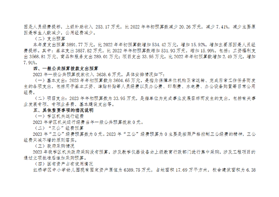 虹桥学区2023年部门预算编制说明
