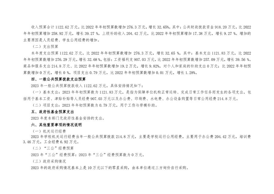 特教学校2023年部门预算编制说明