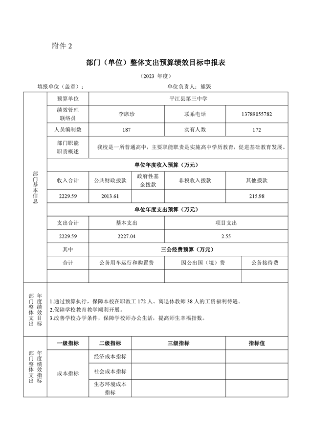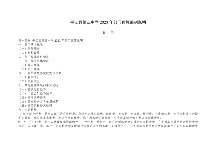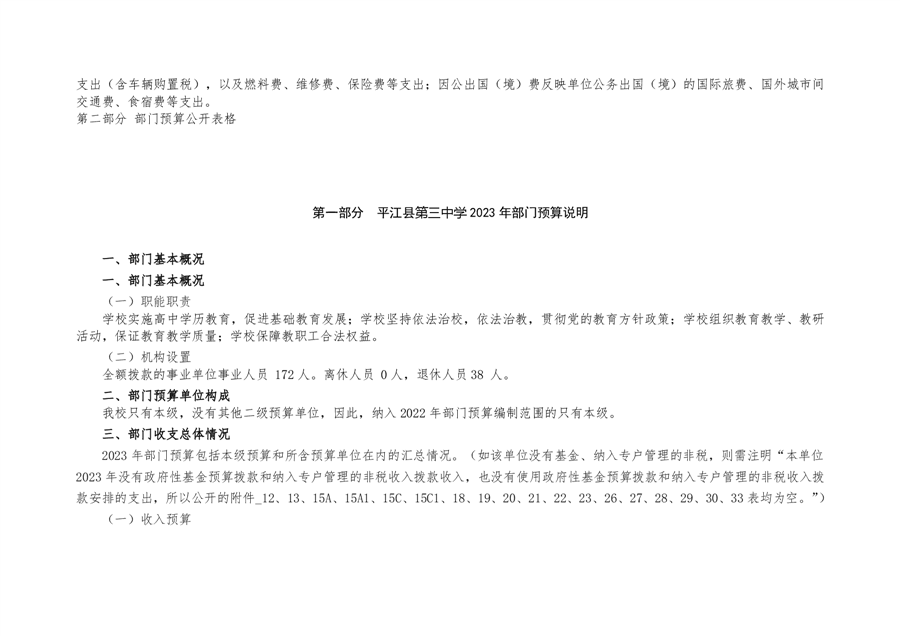 平江三中2023年部门预算编制说明