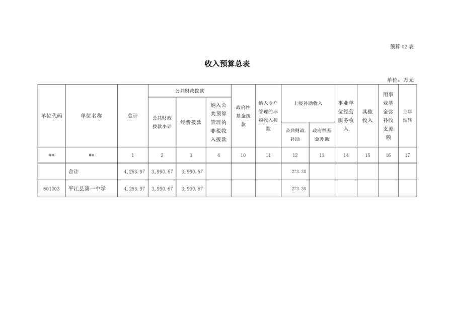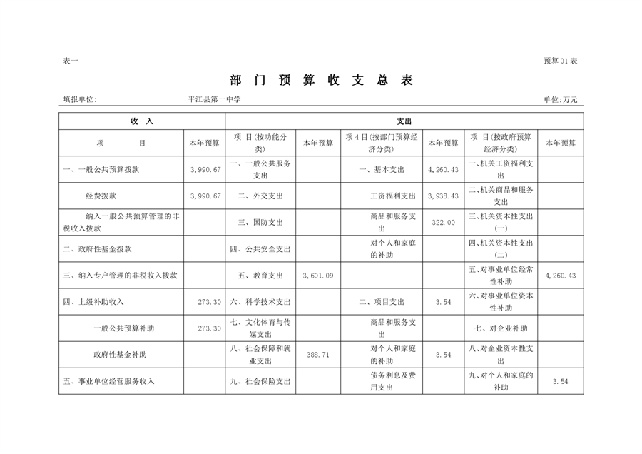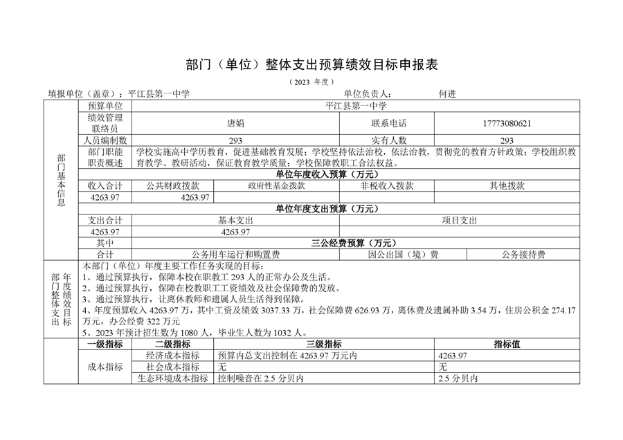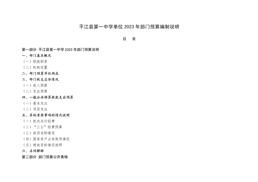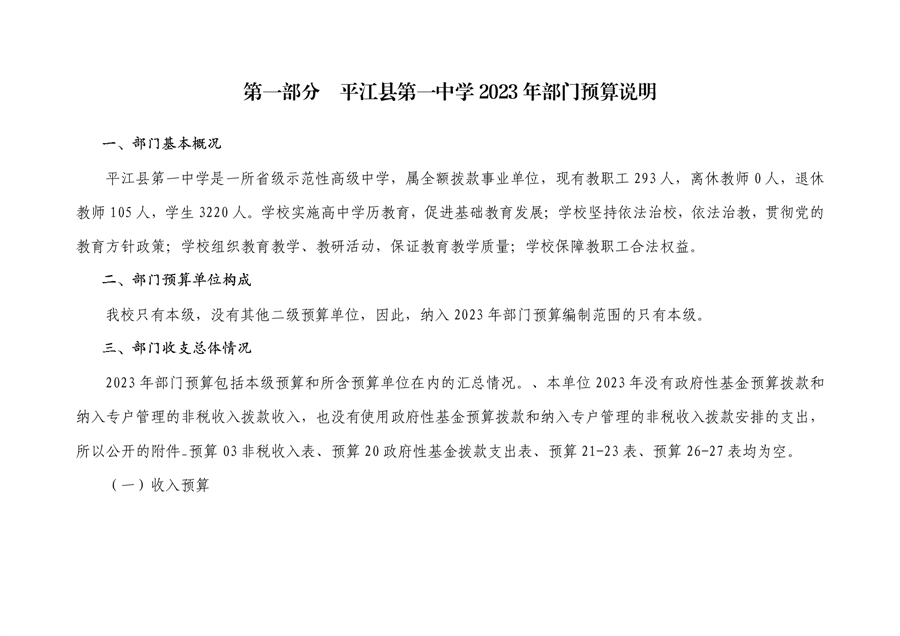 平江一中2023年部门预算编制说明