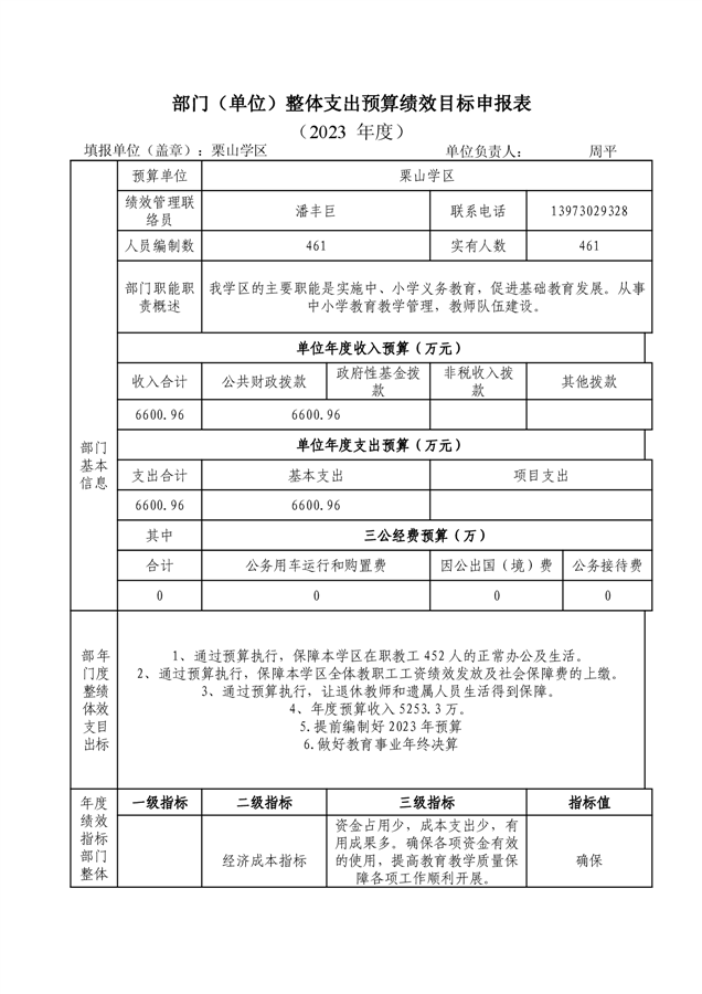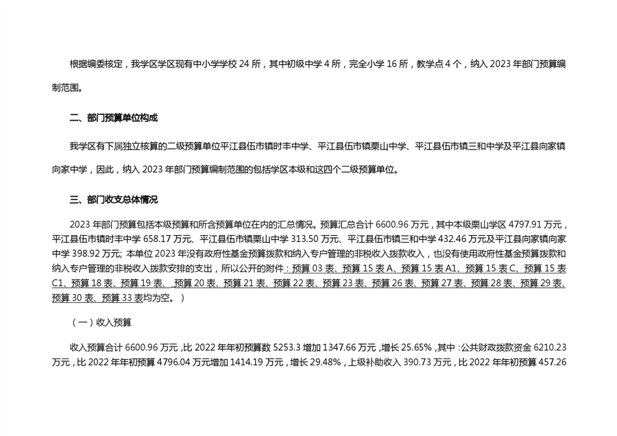栗山学区2023年部门预算编制说明
