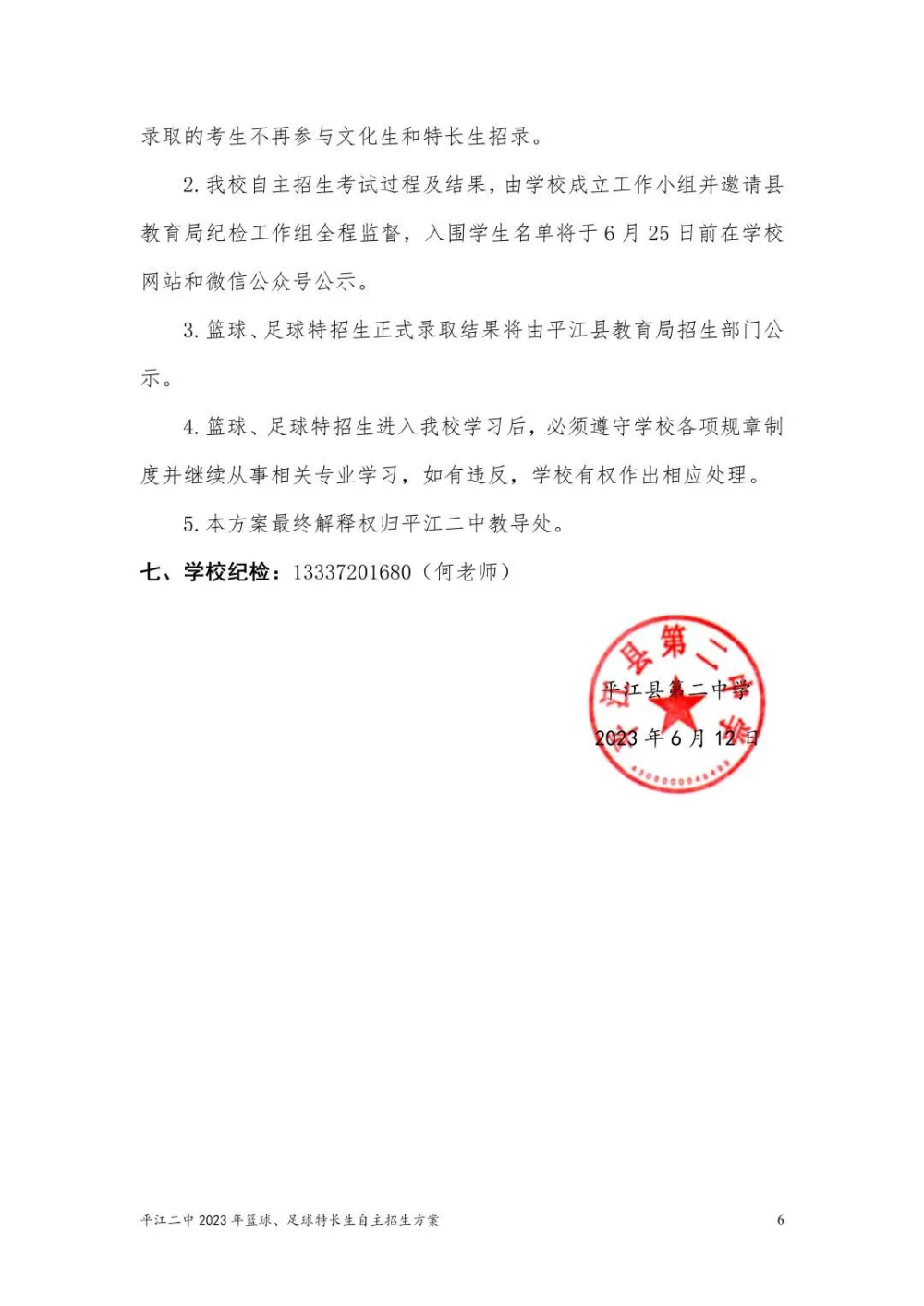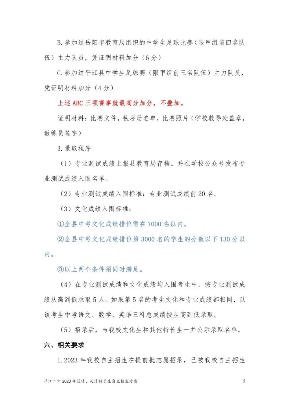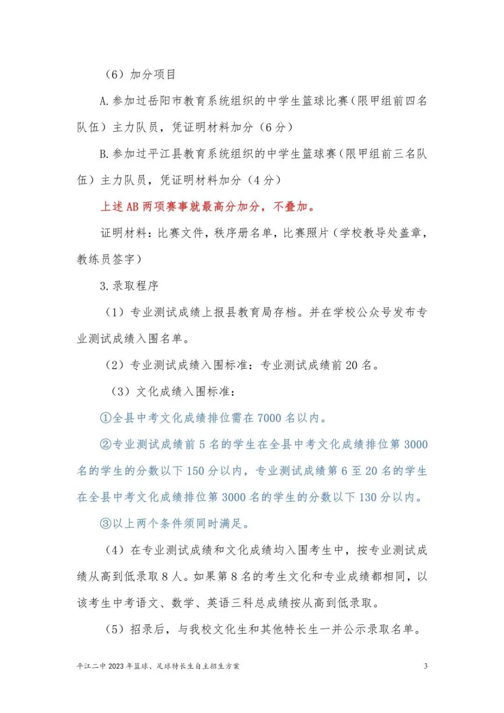 平江二中2023年篮球、足球特长生自主招生方案