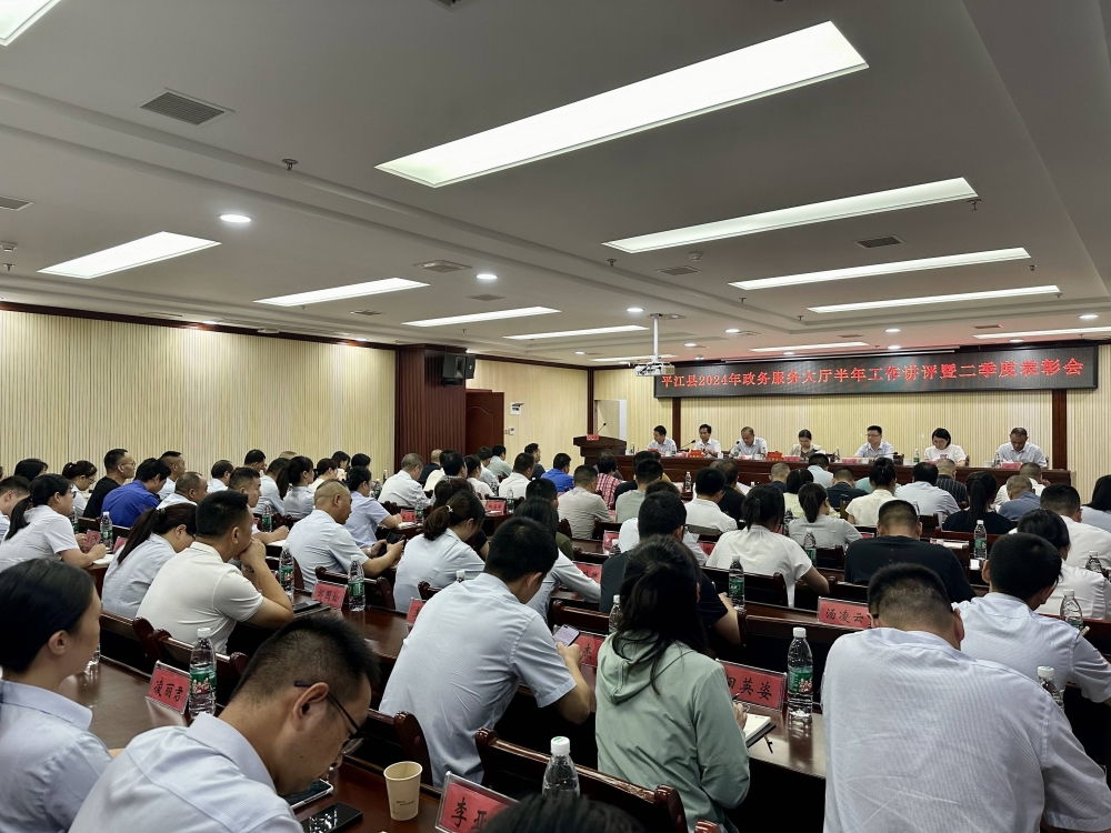 会议指出,今年来,县数据局及政务服务中心各进厅窗口单位认真贯彻落实中共二十届三中全会精神,紧紧围绕中央和省、市、县关于“促进政务服务标准化、规范化、便利化”的工作要求,全面把握县委、县政府总体工作部署和目标任务,以便民为出发点,以优化营商环境为牵引,以“高效办成一件事”改革为总抓手,周密部署,强劲发力,各项工作有序推进、提质增效。半年来,我县40余家部门(单位)在省“互联网+政务服务”一体化平台共汇集各类政务服务事项办件量104574件,各类政务服务事项正常办结率99.79%,办件法定提速率98.4%、办件承诺压缩率73.54%,全县85%政务服务事项实现全程网办,推进电子证照汇集共享,完成各类电子证照汇集种类达95类(要求80类),“无证明城市”、“自动表单生成”、“免申即办”、“乐游平江”、“跨省通办”等通过数据赋能实现特色场景应用。