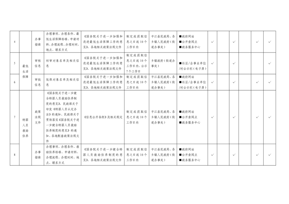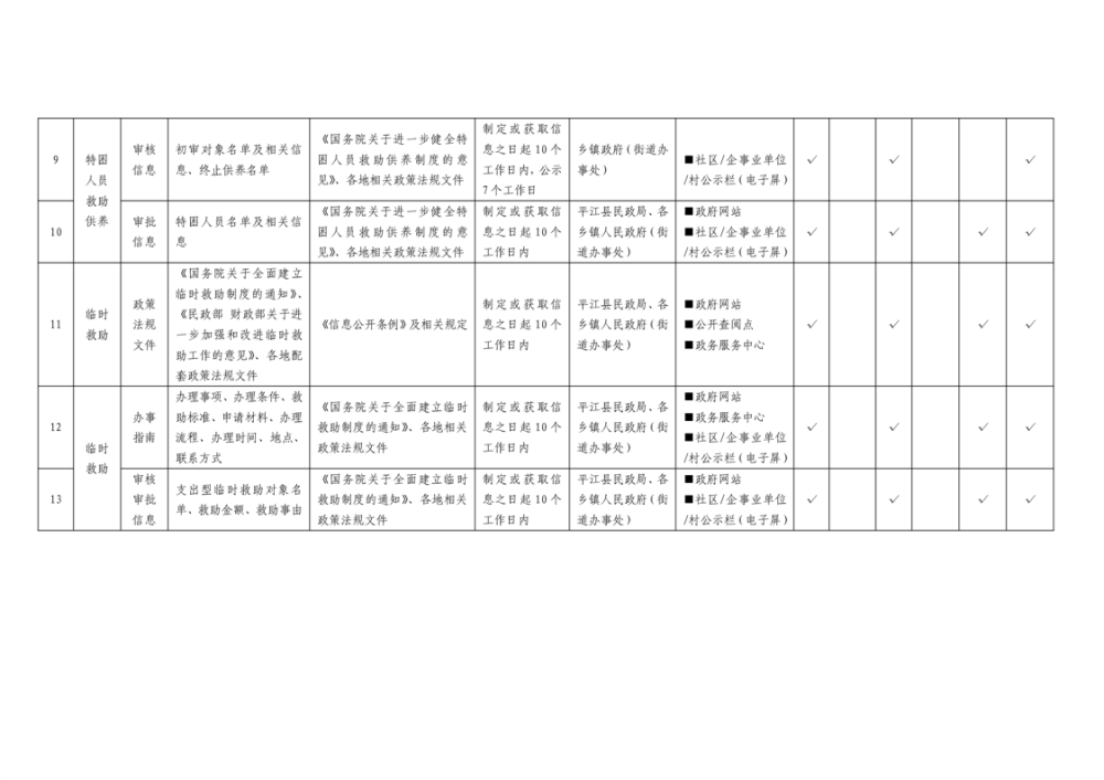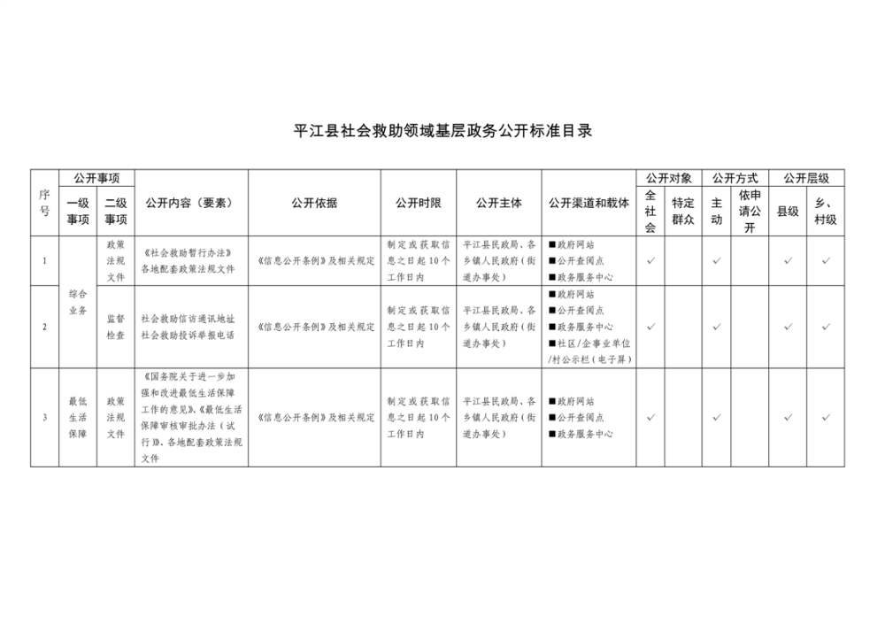平江县社会救助领域基层政务公开标准目录